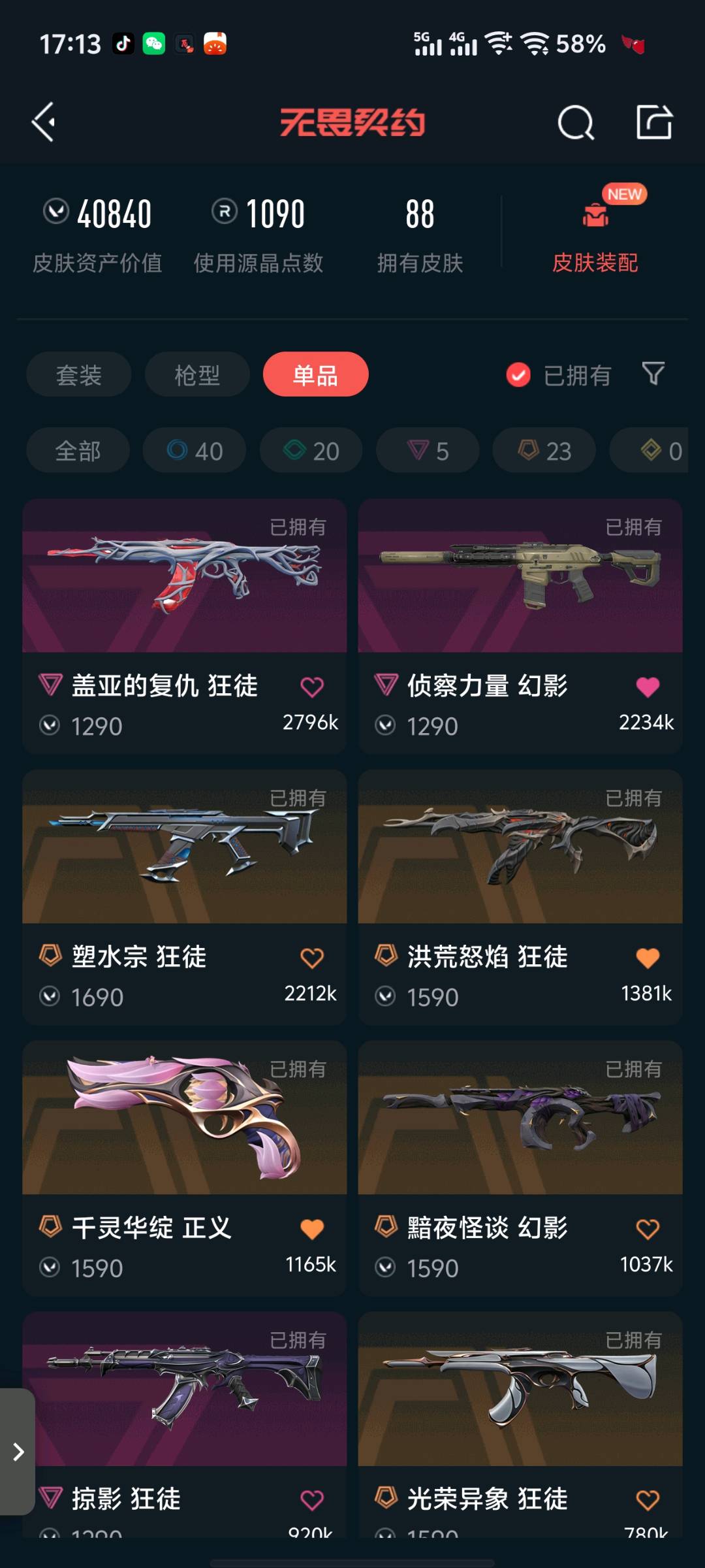• 皮肤资产价值: 40840