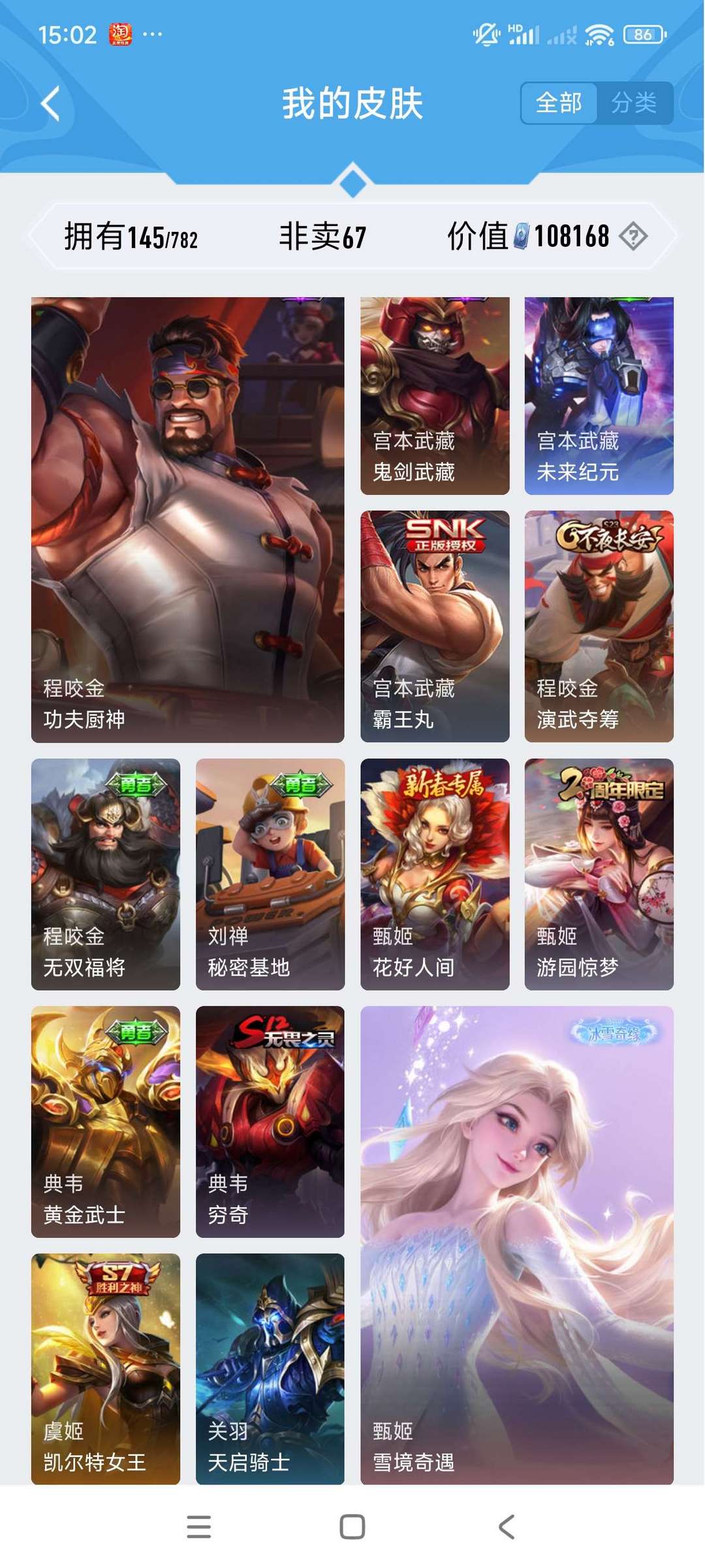 女生号 贵10 多皮肤多传说 别拿那些空号v10来比 要看性价比 貂蝉武则天夏侯惇孙悟空李白鲁班小乔荣耀水晶 妲己九尾无双皮肤 80个传说 473皮肤