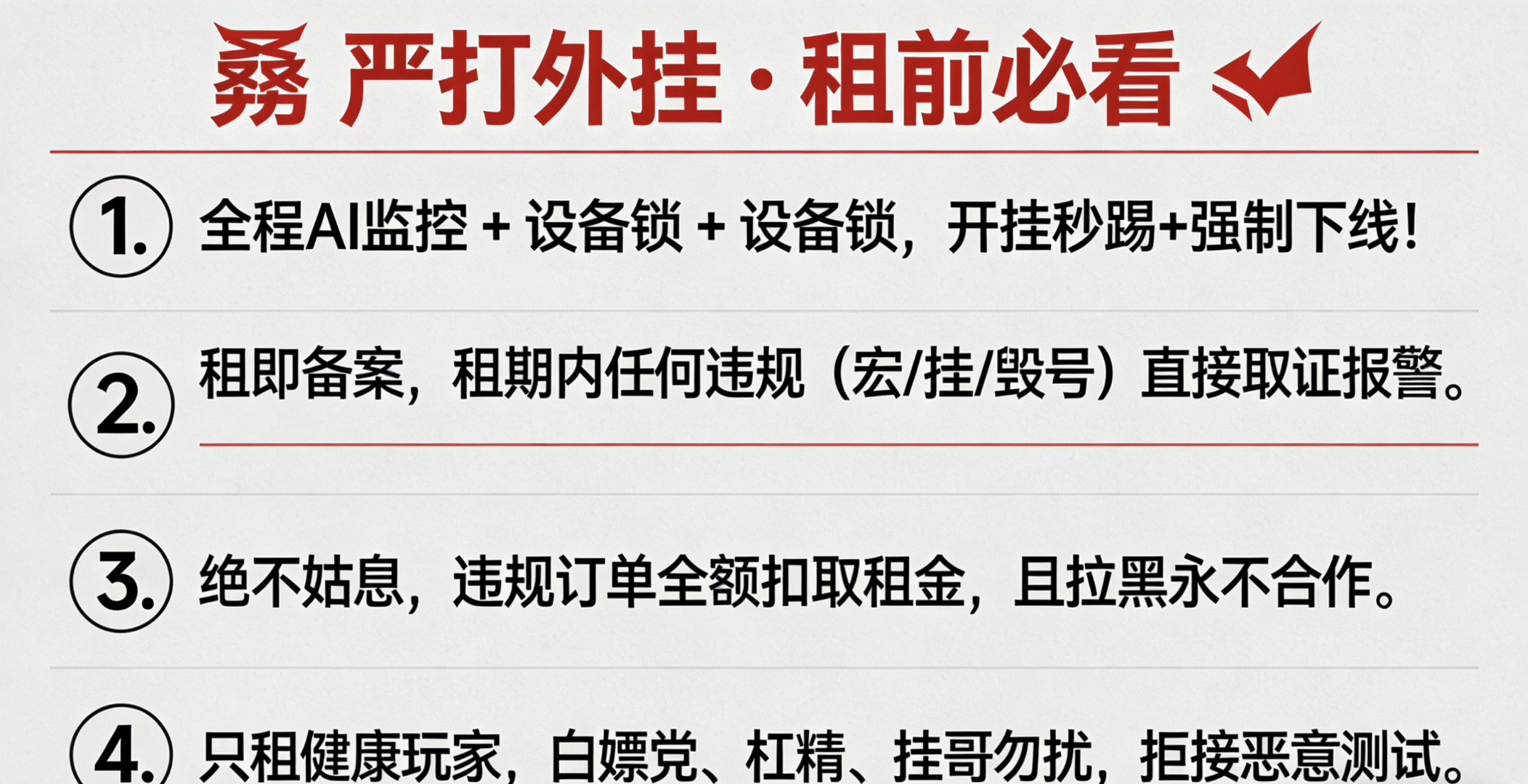 • 温馨提示:禁止使用外挂否则将扣除全部租金和押金,该信息由网络用户发布并对内容负责,GG租号仅是信息发布平台
