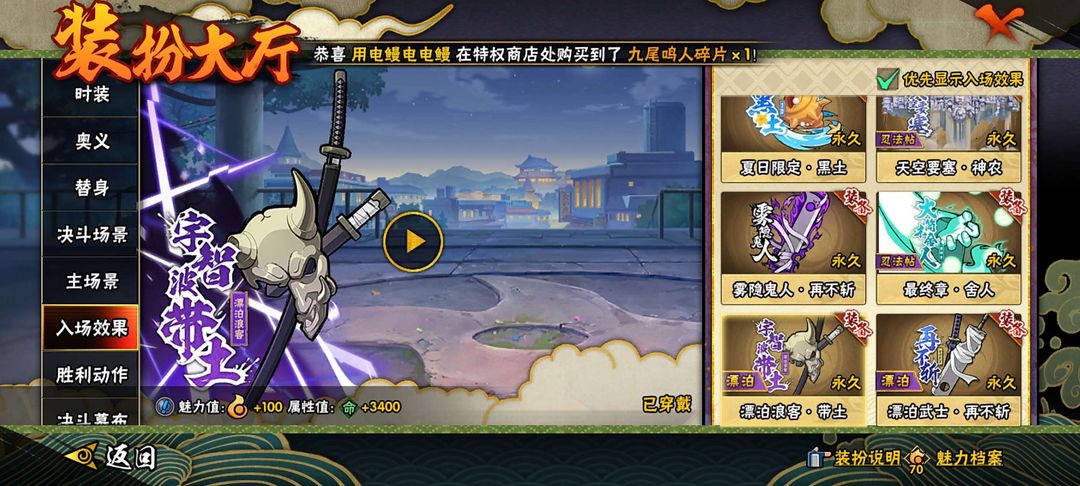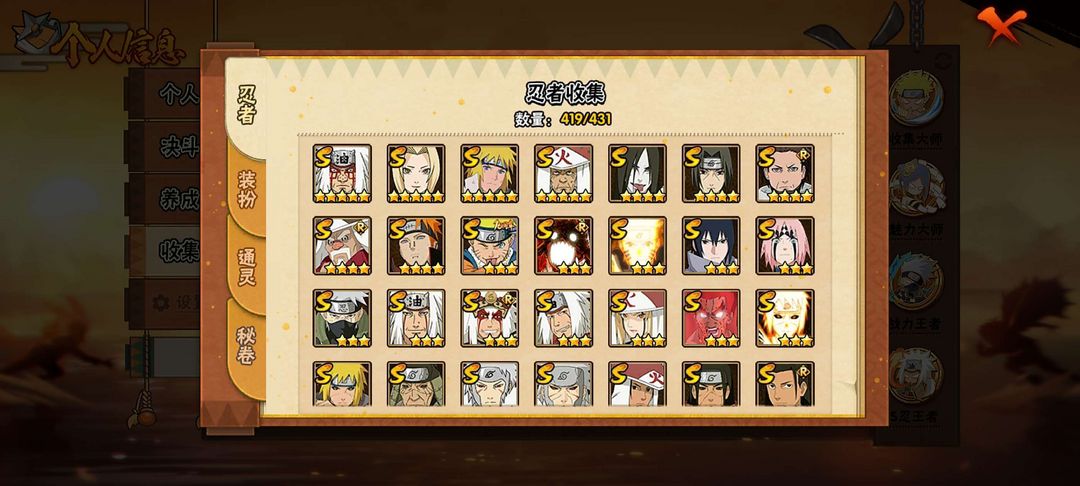 3000w,57s,102a,419忍/神驹斑/漂泊带土/黑绝/70级魅力值/3700w战力