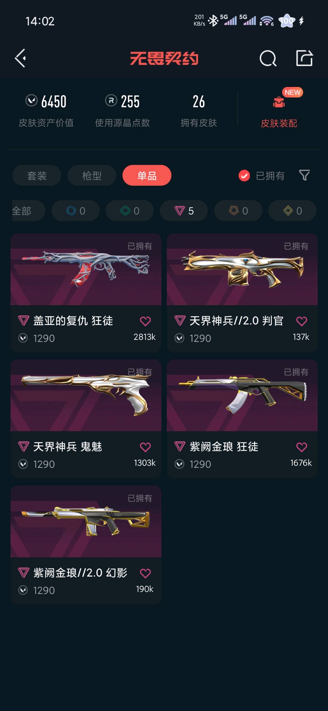 • 皮肤资产价值: 6450