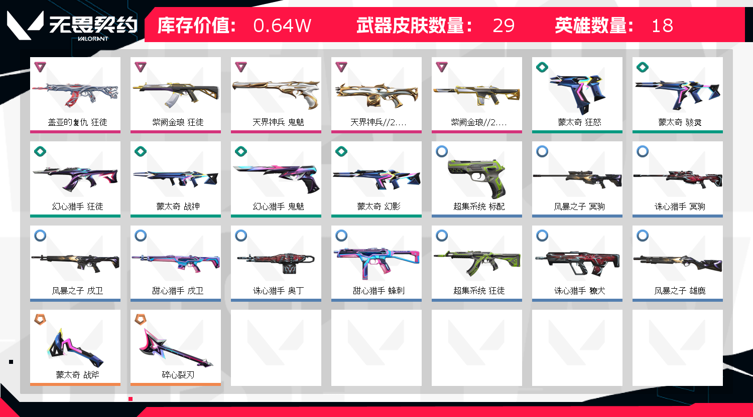 • 武器皮肤数量: 29