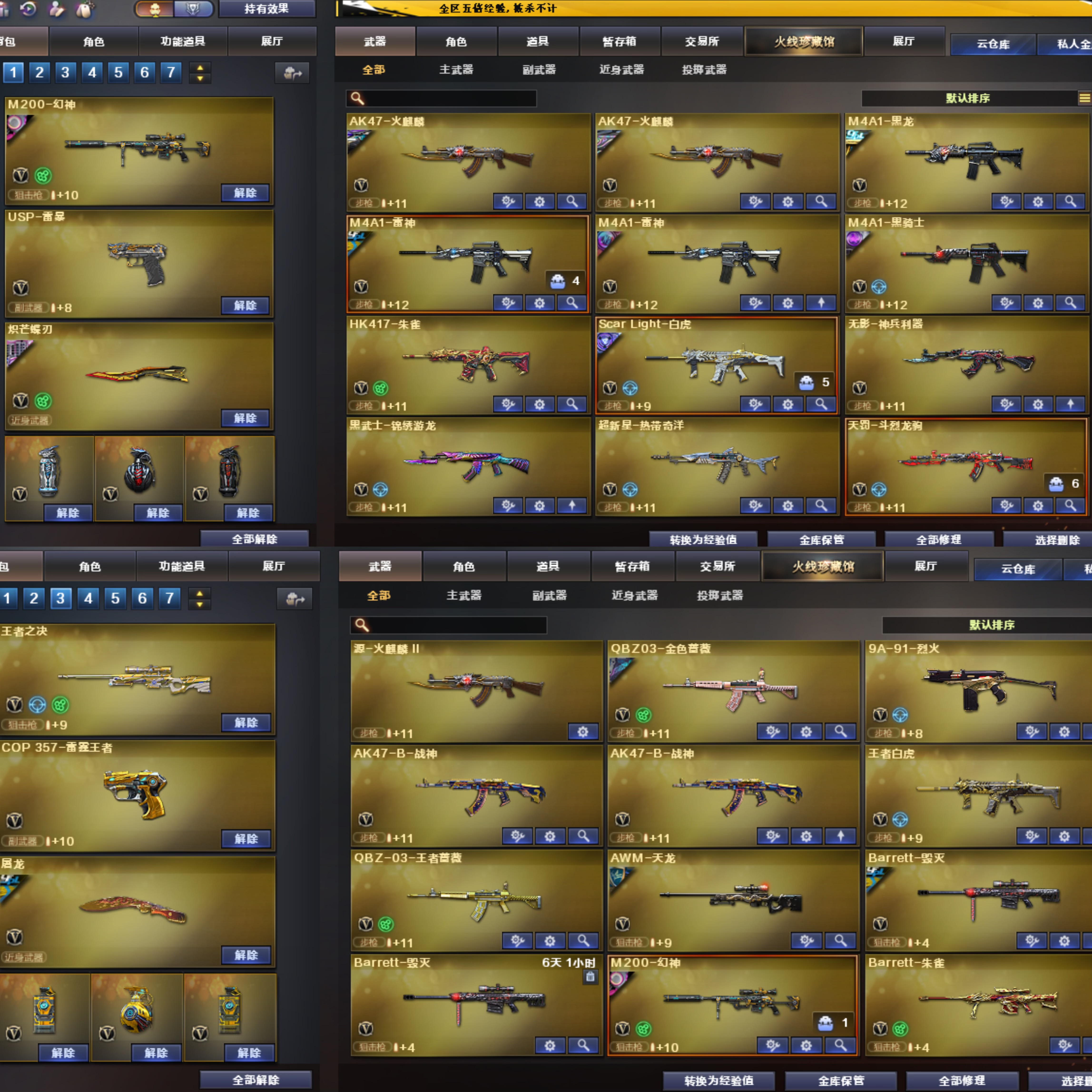 租长时间的兄弟中途尽量不要下号,重新上号可能会登陆不上,出现登陆不上问题➕V:Tau-9331 喜欢就收藏 当自己号玩✨ 🈲租号开挂也不要和外挂组队,小店所有账号都已在警察局备案,开挂造成封号等不良后果报警处理,请文明游戏,杜绝外挂❗️;USP-雷暴,炽芒蝶刃,Knife-冠军之刃,电竞教官-云悠悠,QBZ03-金色蔷薇,M200-幻神,Scar Light-白虎,