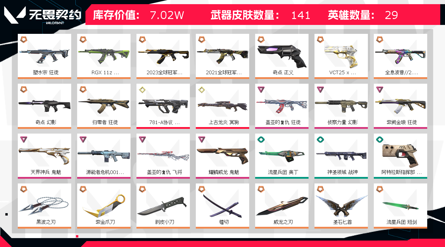 • 武器皮肤数量: 141