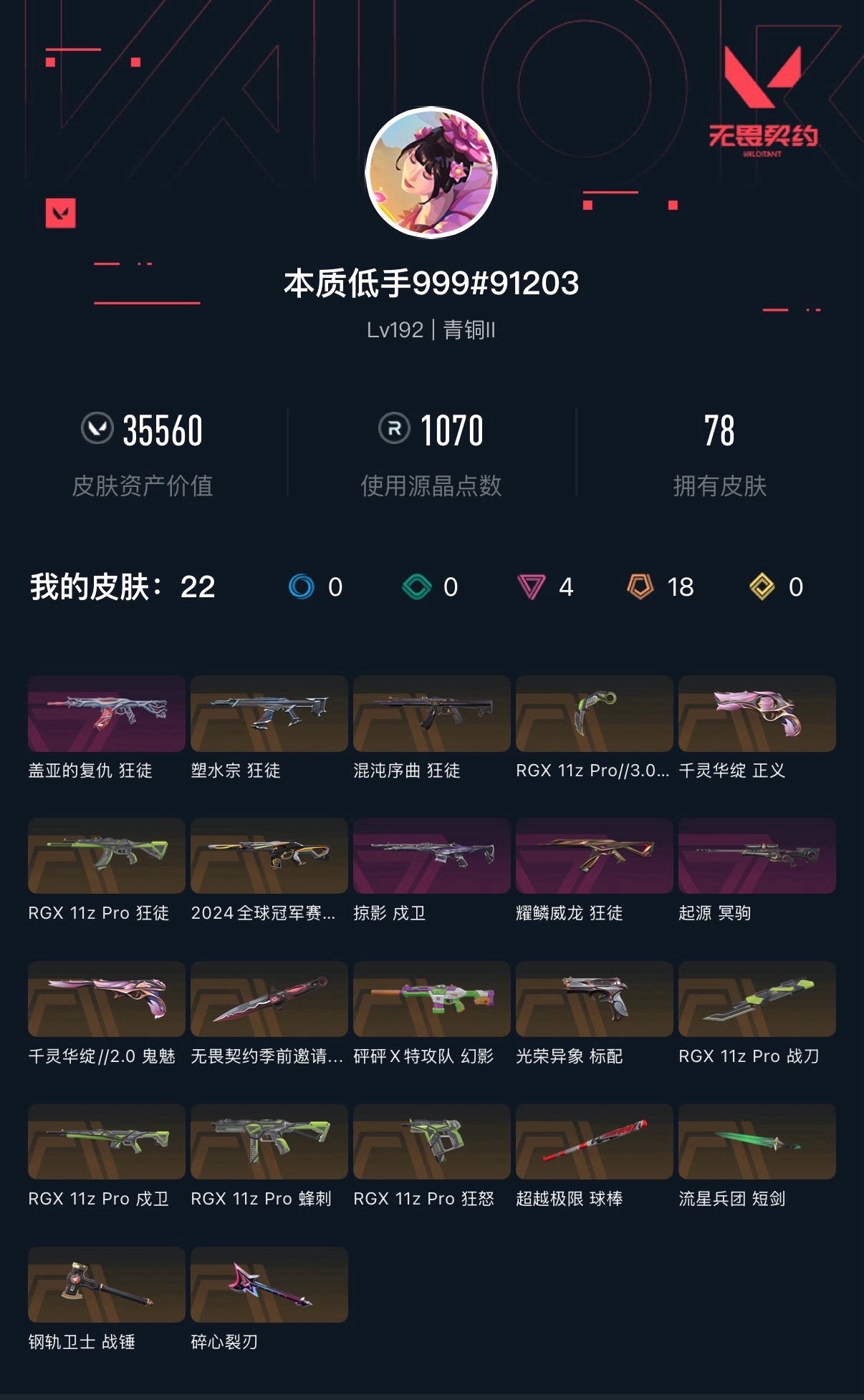 • 皮肤资产价值: 35560