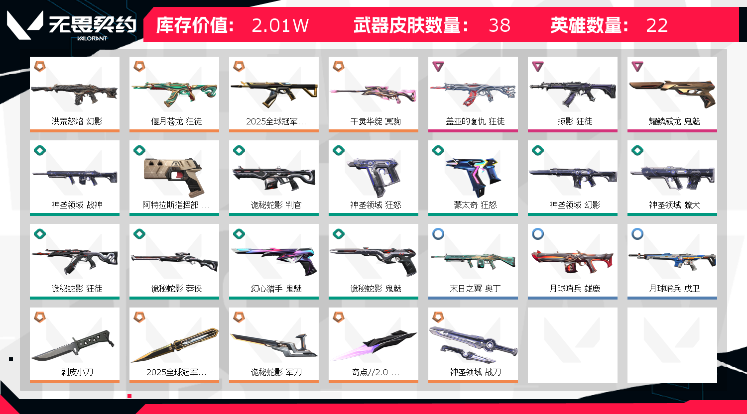 • 武器皮肤数量: 38