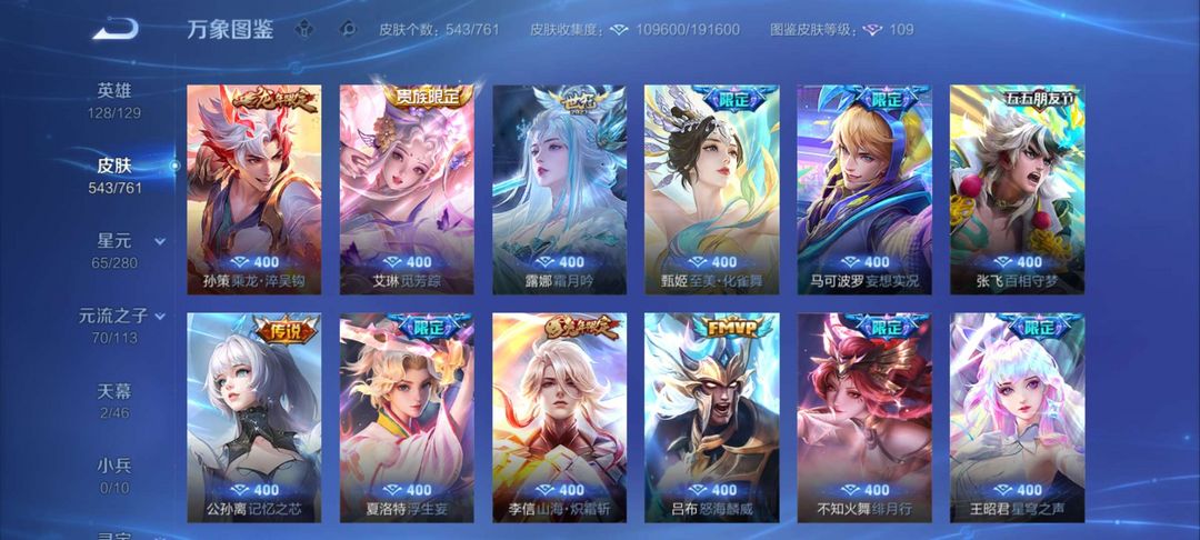 V10、550皮14水、吕布典藏-千魇归渊、云缨-神骥·越千峰、怪盗基德、伽罗星传说红枫、瑶典藏拾光映像、冥王哈迪斯、、龙年限定、齐天大圣