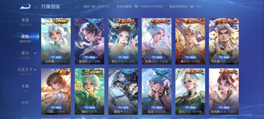 【非云直上】537满皮满典藏12星元◎鲁班新皮◎虞姬星元◎天使星元◎白金战神◎妲己绝版星元