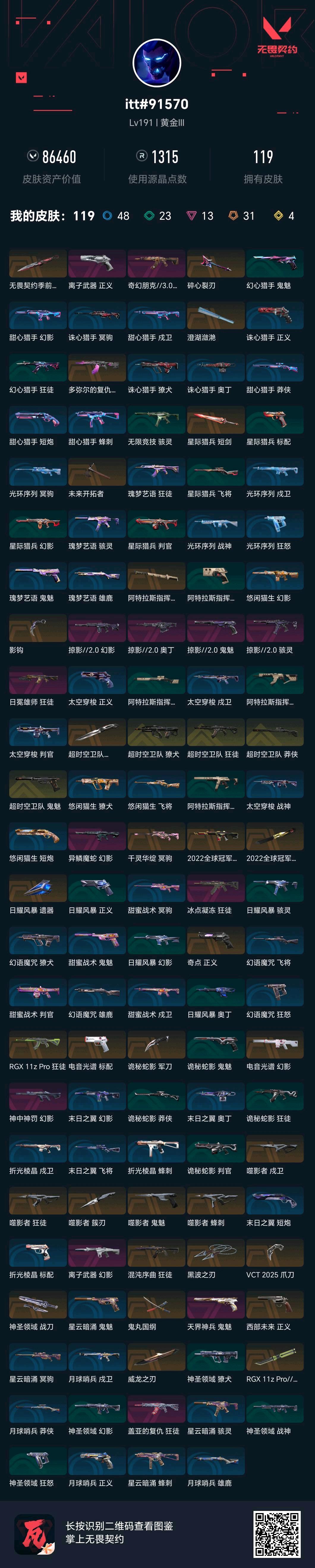 • 皮肤资产价值: 86460