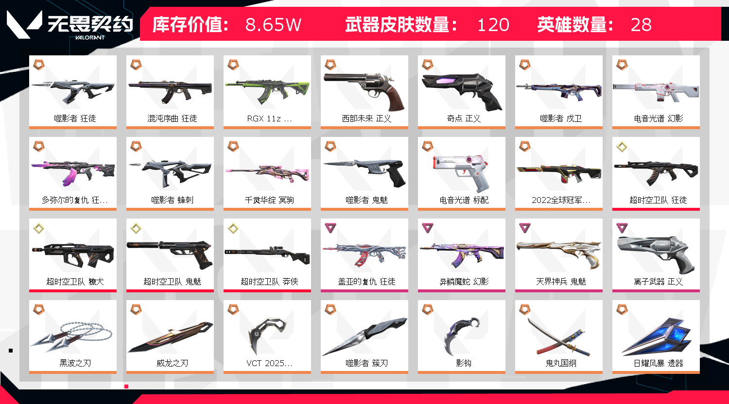 冻结协助😻挂机拉黑8w库存/怜悯之刃/超时空卫队套/掠影2.0套/22冠军套/噬影者套/VCT爪刀