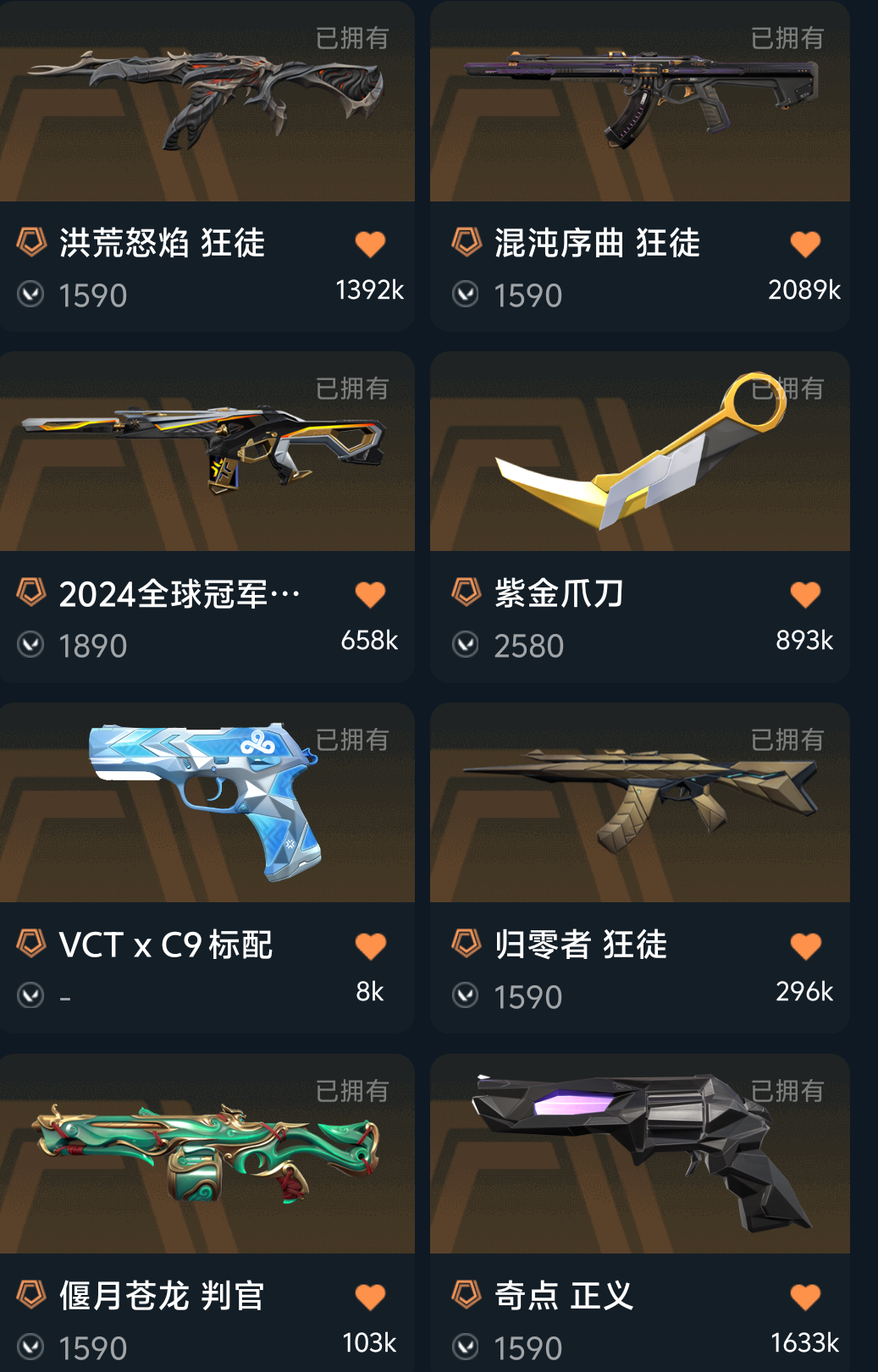 人头禁30+,容易禁赛,炸鱼杀的太多导致禁赛的一概拉黑,稳赢的情况下尽量控制一下战绩;紫金爪刀,偃月苍龙 判官,盖亚的复仇 狂徒,洪荒怒焰 狂徒,天界神兵 戍卫,混沌序曲 狂徒,2024全球冠军赛 幻影,