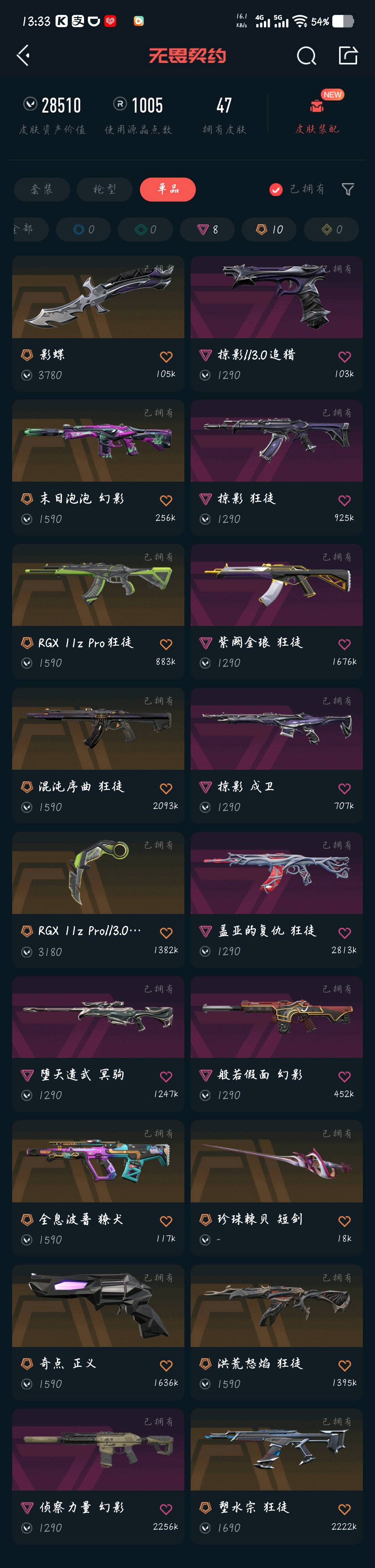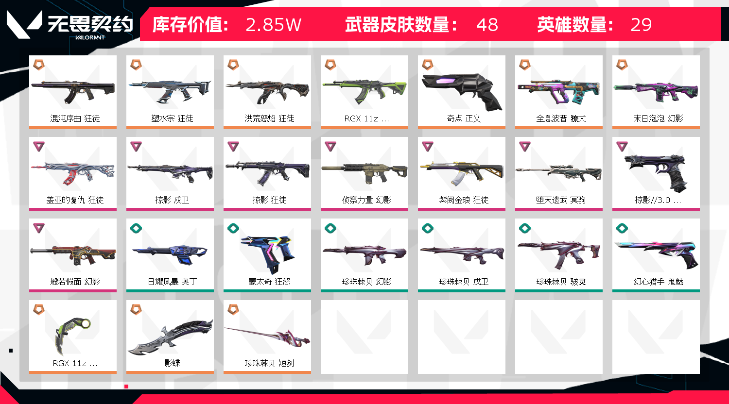 • 皮肤资产价值: 28510