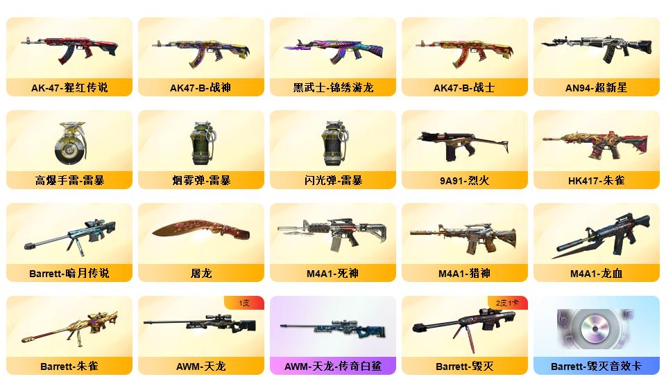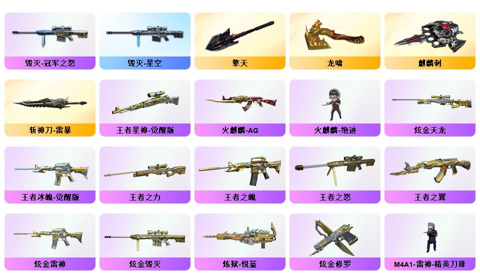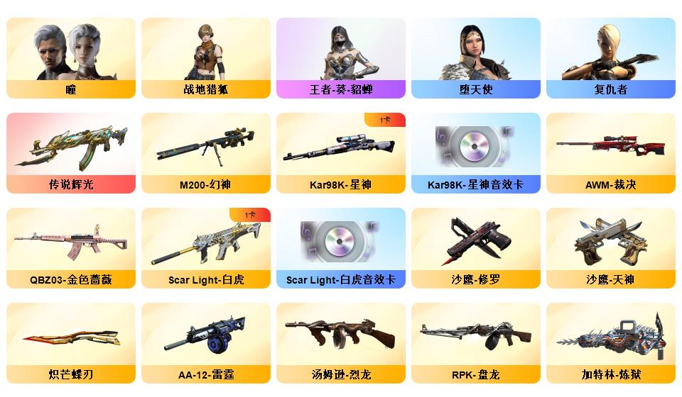 73v vip6《5炫金》《7王者》《传说辉光》《m200幻神》《98k星神+星神音效卡》《裁决》《王者星神》《1911大黄蜂》《炽芒碟刃》《白虎》《朱雀》《qbz天罚》《王者冰魄》《qbz金色蔷薇》《烈火》《毁灭》《火麒麟》《雷神》《黑骑士》《6烈》《牛牛ak》《雷神精英刀锋 火麒麟绝迹 金色蔷薇空》《乔伊教练 4防王者葵貂蝉 超能女侍觉 女主播》《黑骑士音效卡 火麒麟音效卡 白虎音效卡 毁灭音效卡 雷神音效卡》《白虎霓虹机