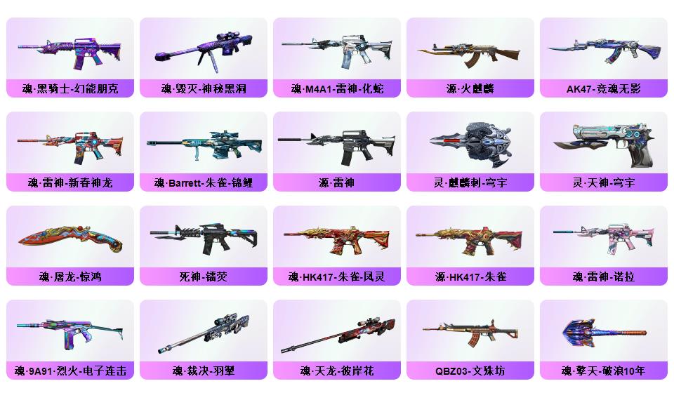 《传说星骇》《m200幻神+星耀皮肤+黄忠皮肤》《98k星神+璀璨皮肤+星神音效卡》《传说破晓》《炽芒蝶刃》《柯尔特荣耀世冠白鲨2023》《玄豹套装》《裁决+运