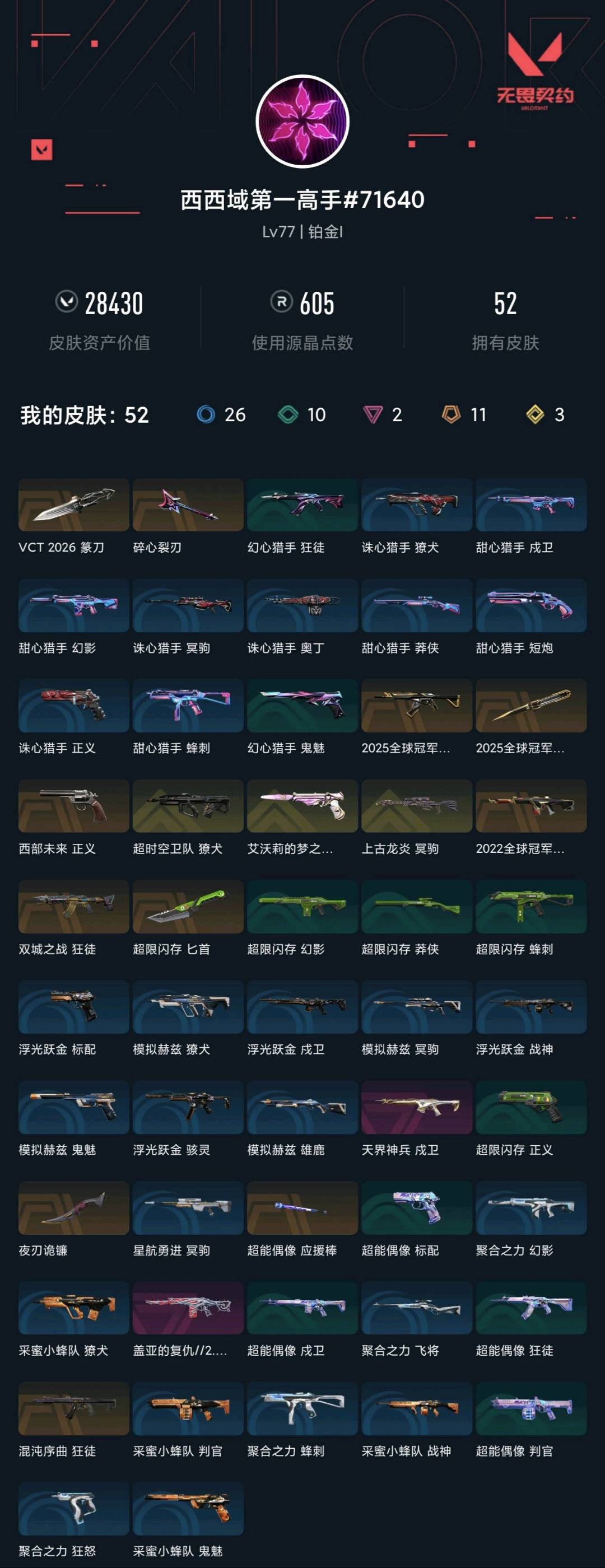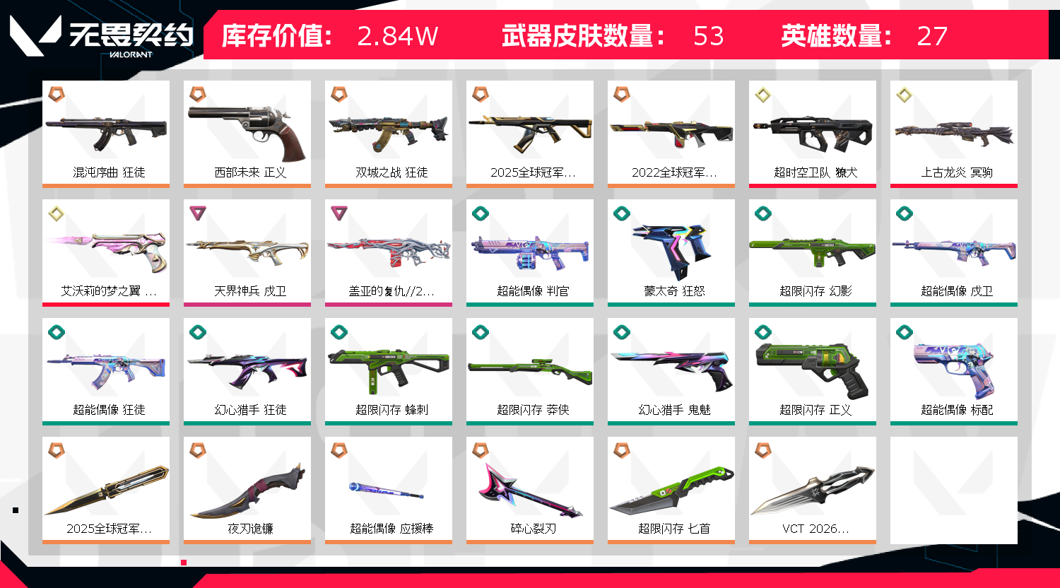 • 游戏区服:无畏契约-wegame / wegame / wegame