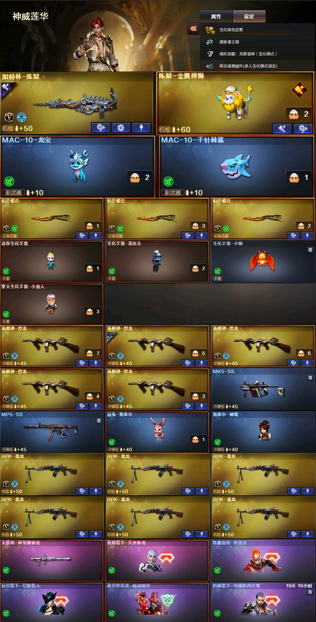 神威莲华③传说🔥幻神权④皮🔥双炼狱金翼禅狮⑥烈蝴蝶④冠特②冠刃🔥白虎裁决三件套③把炽芒蝶刃②皮