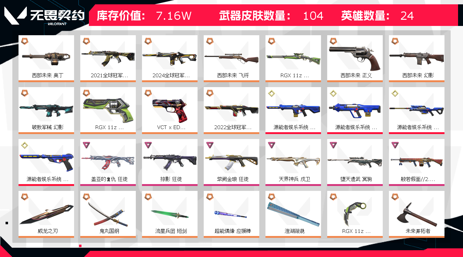 • 武器皮肤数量: 104