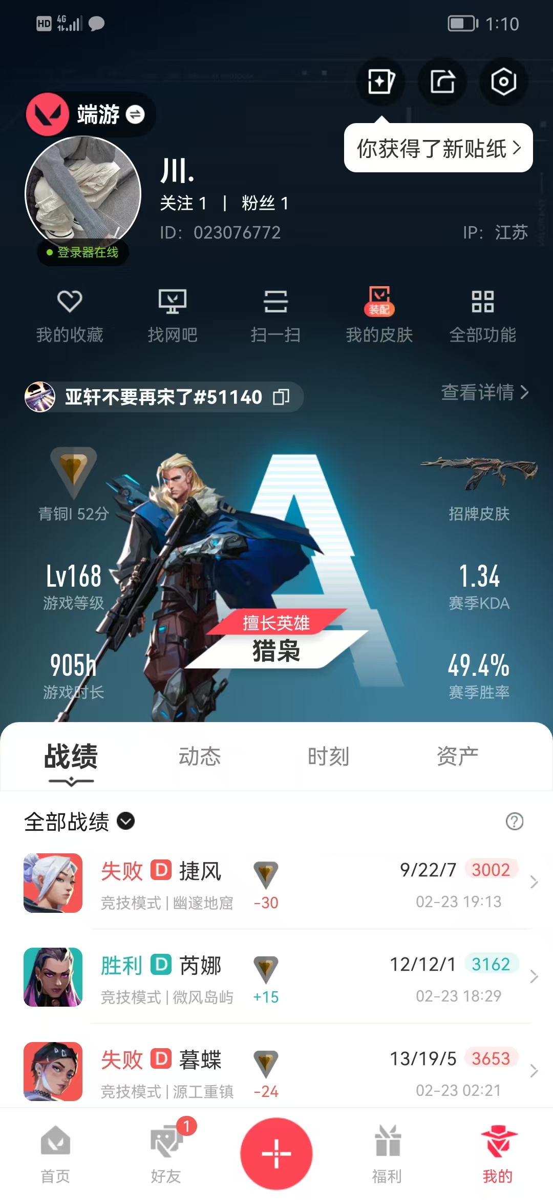 • 游戏区服:无畏契约-wegame / wegame / wegame