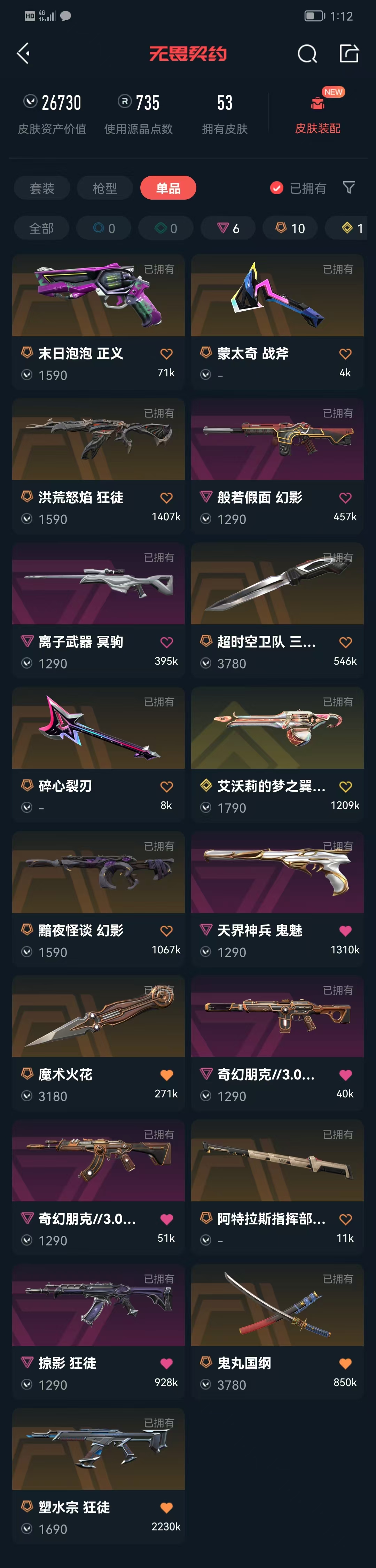 • 皮肤资产价值: 26730