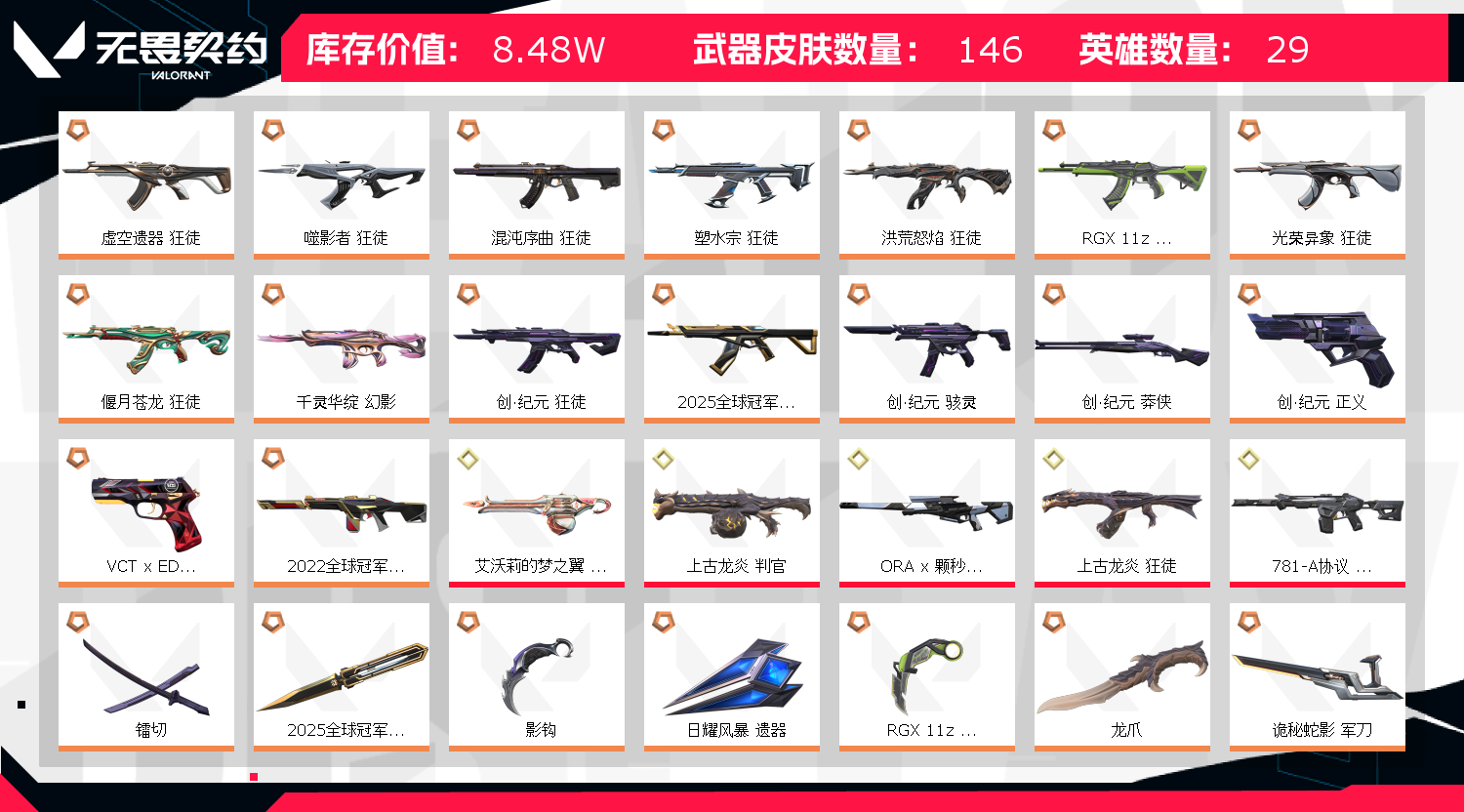 • 游戏区服:无畏契约-wegame / wegame / wegame