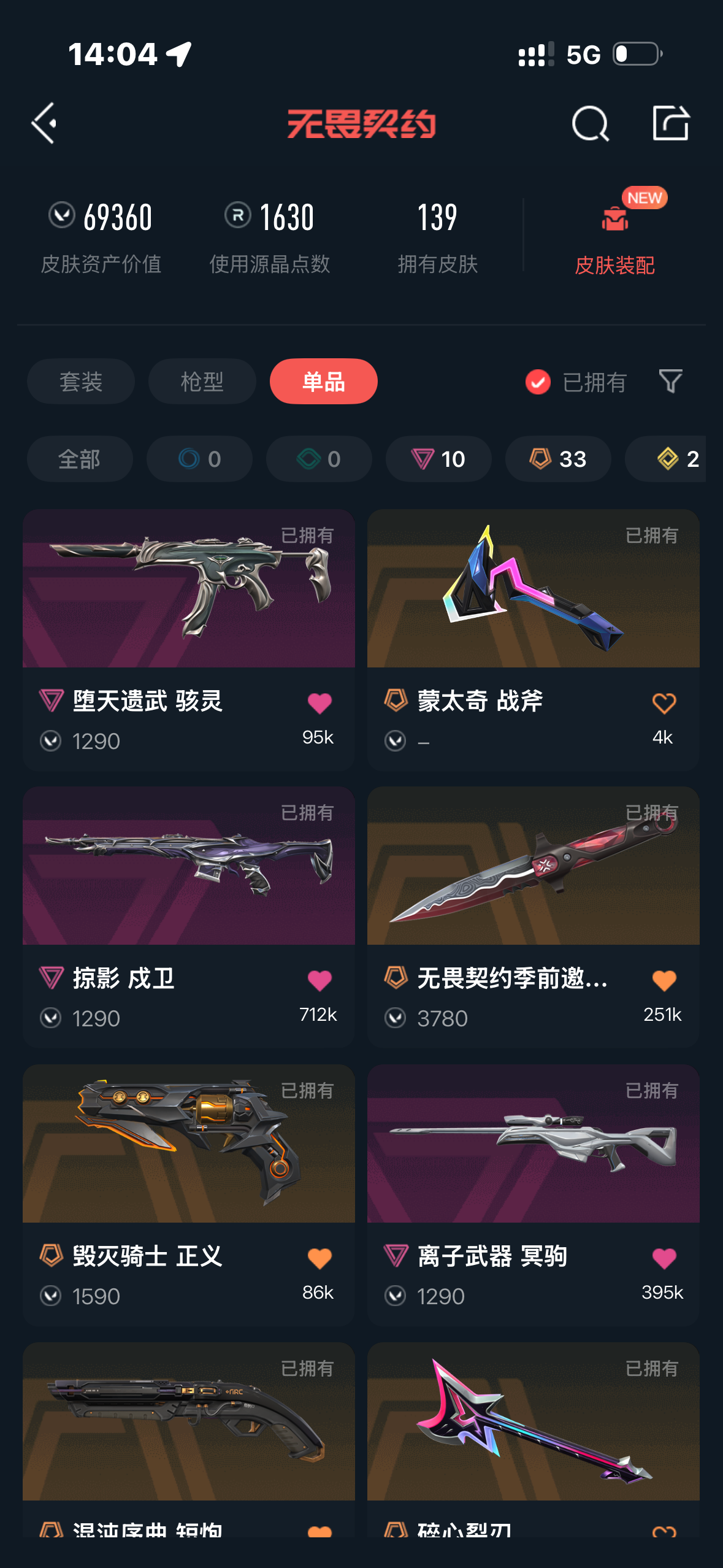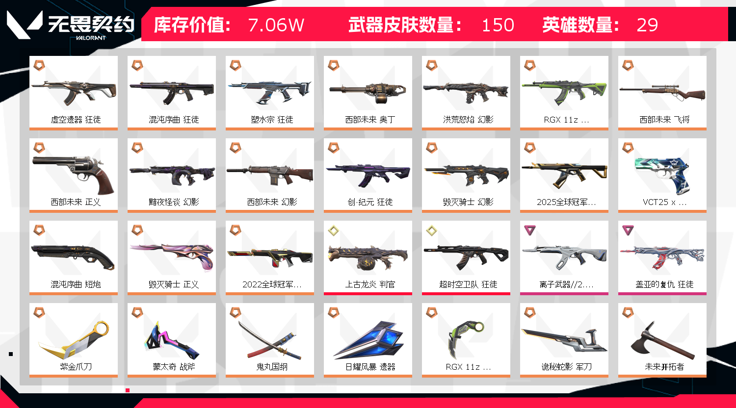 • 皮肤资产价值: 70650