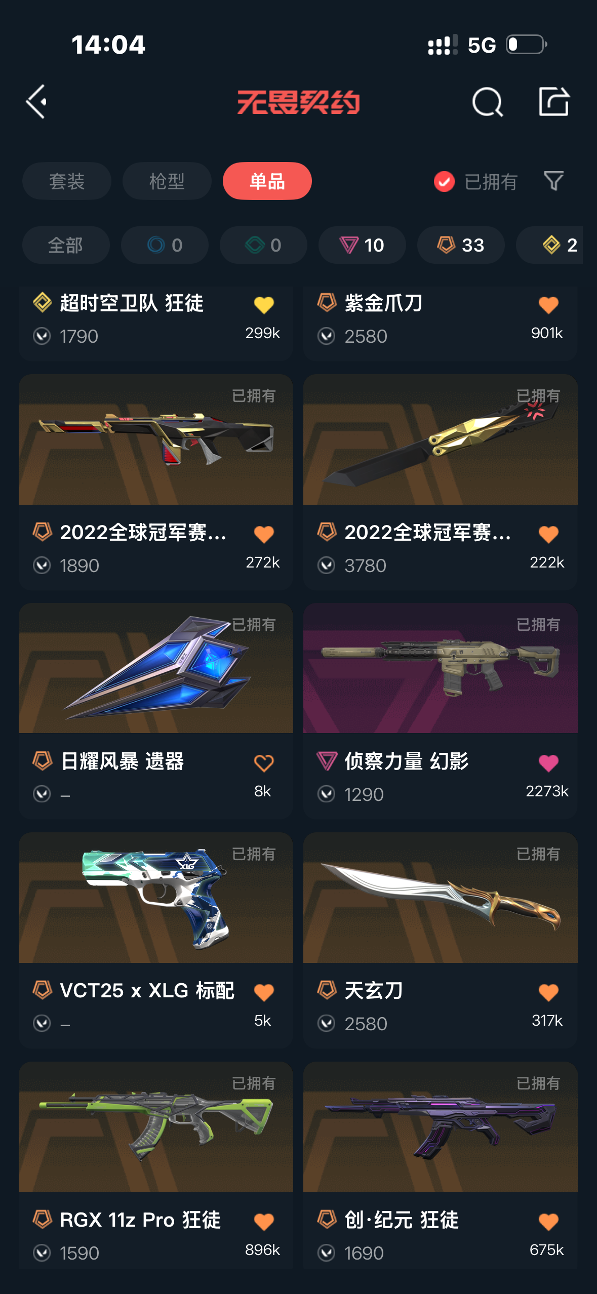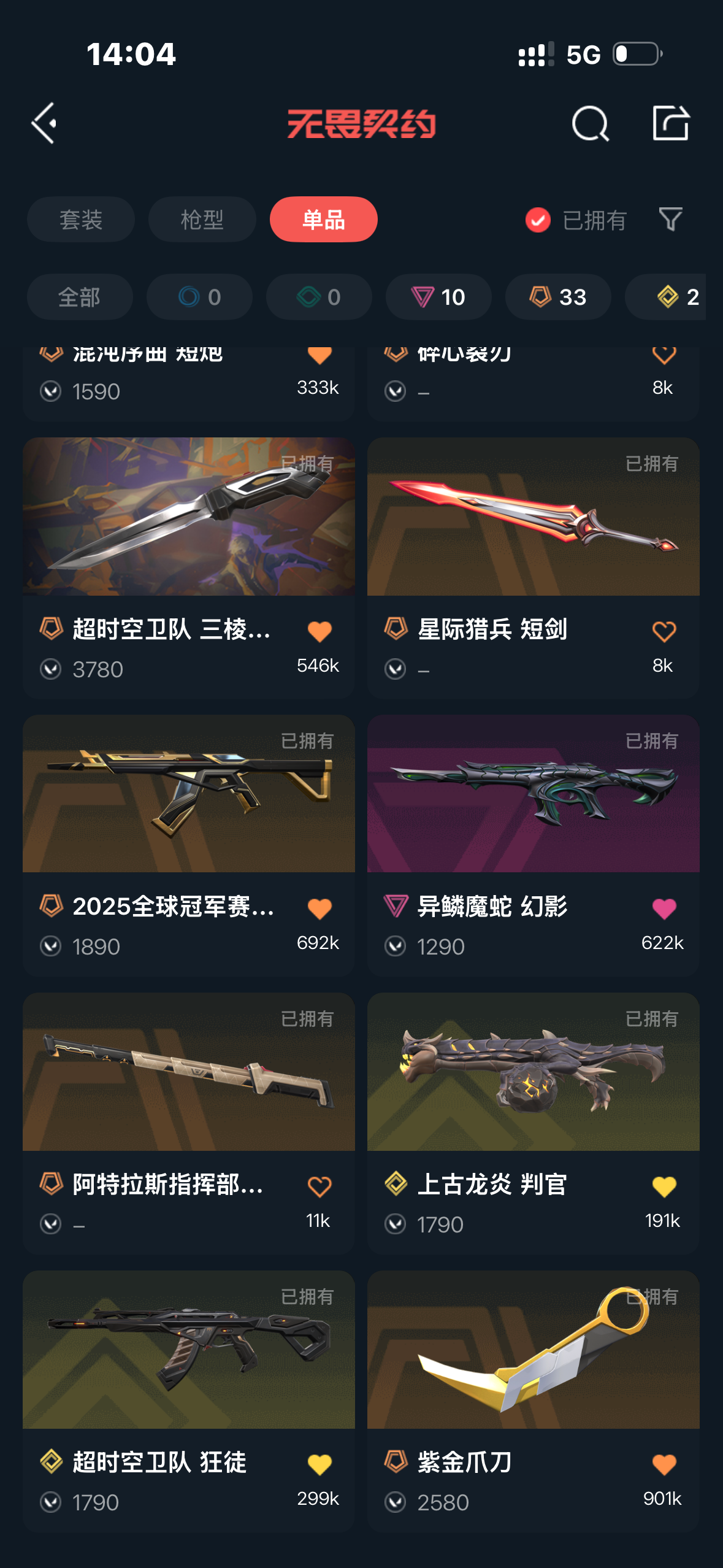 首页 > 租号大厅 > 无畏契约-wegame > wegame/wegame > 怜悯之刃三棱军刺混沌盖亚22冠军天玄刀紫金爪刀侦查,几乎枪皮都有皮肤