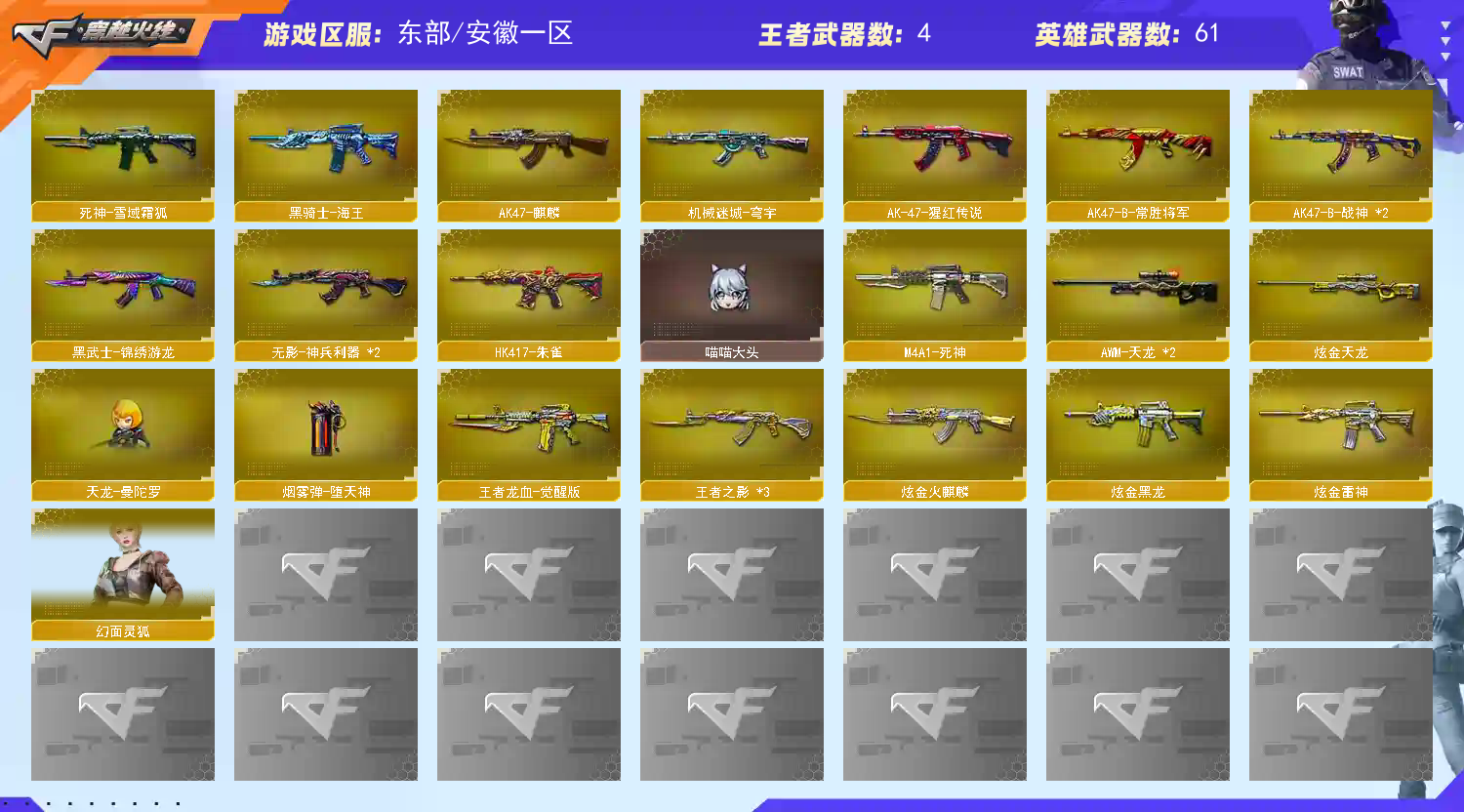 • 游戏区服:穿越火线 / 东部 / 安徽一区