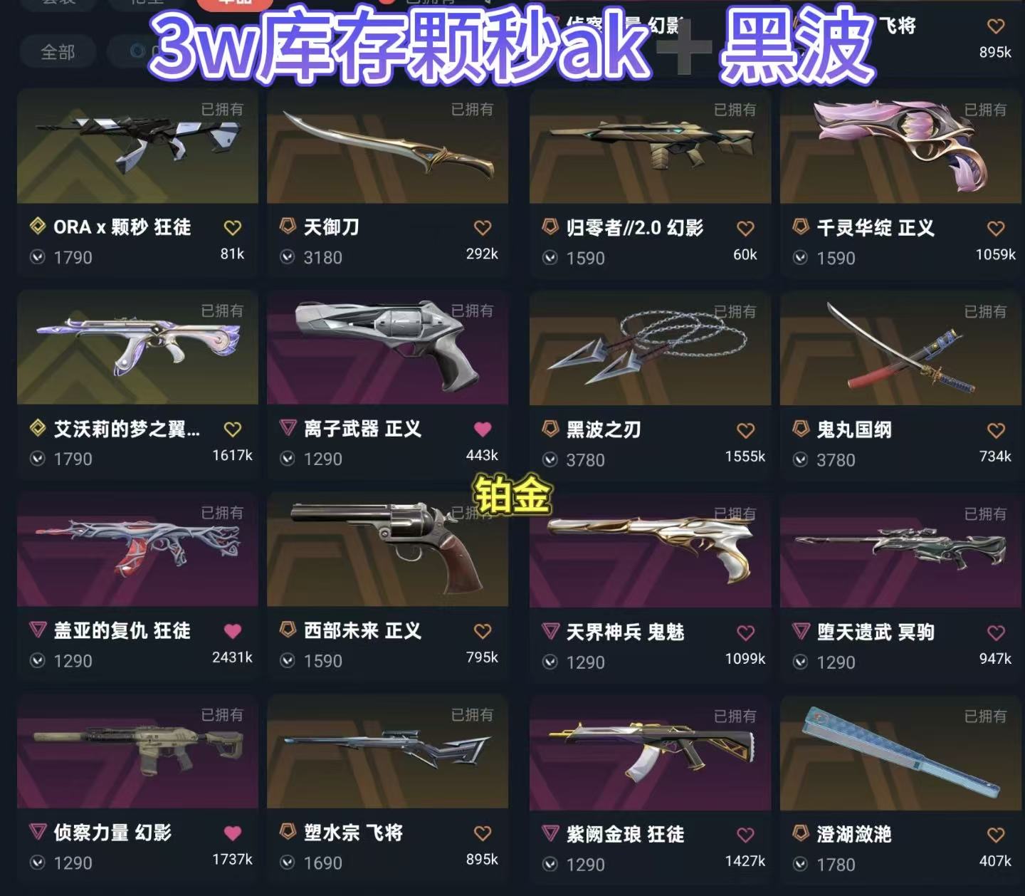 冻结秒解⚡4w库精品黑波颗秒ak⚡太刀鱼扇天御刀ak颗秒盖亚猫猫紫金m4侦察归零塑水飞将堕天冥驹;黑波之刃,盖亚的复仇 狂徒,侦察力量 幻影,紫阙金琅 狂徒,塑水宗 飞将,堕天遗武 冥驹,西部未来 正义,