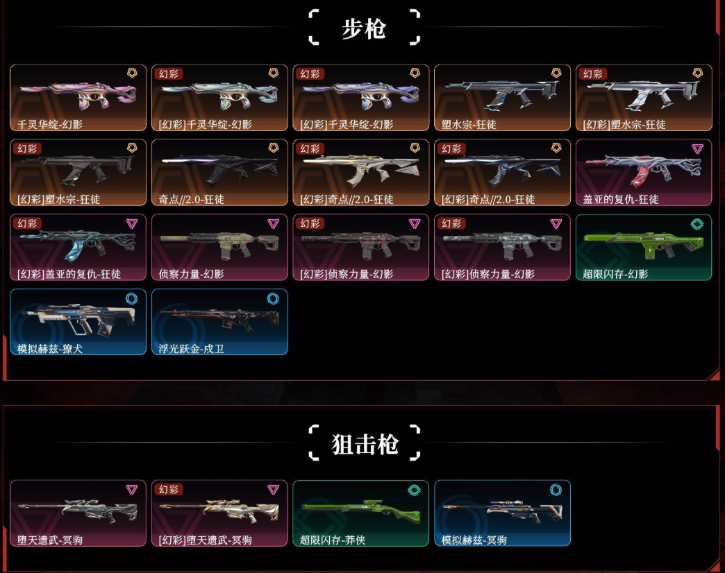 冻结重上号✨离子2套装✨塑水宗奇点盖亚的复仇狂徒✨千灵华绽侦察幻影✨落英飞旋✨堕天大狙✨西部正义