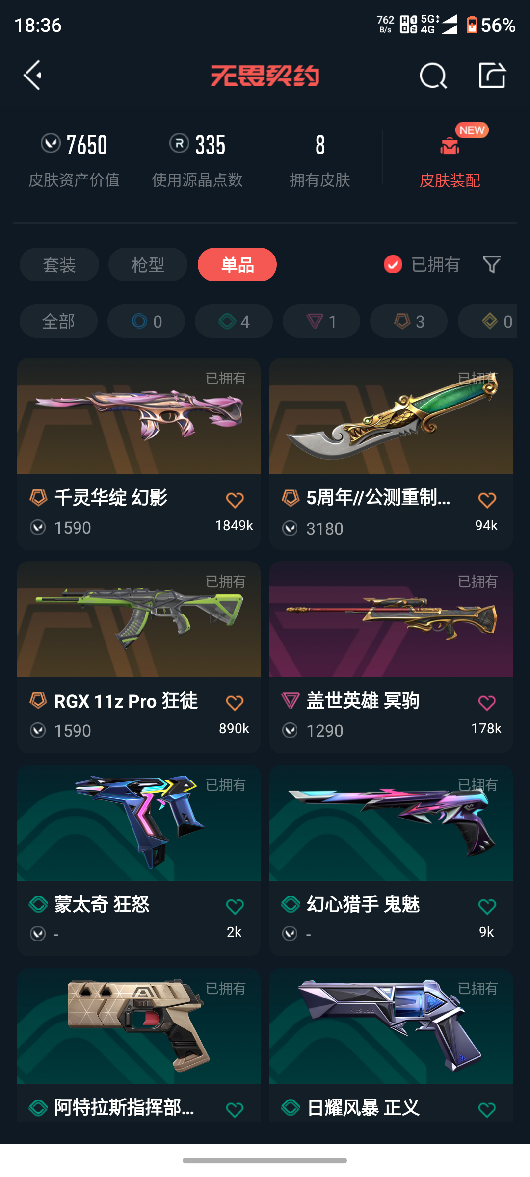 • 皮肤资产价值: 7650