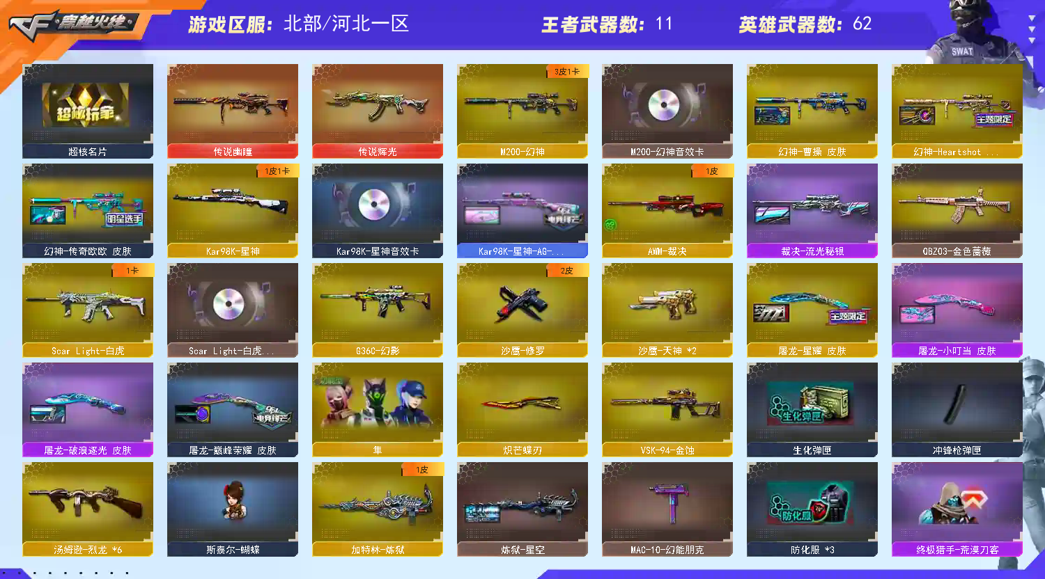• 游戏区服:穿越火线 / 北部 / 河北一区