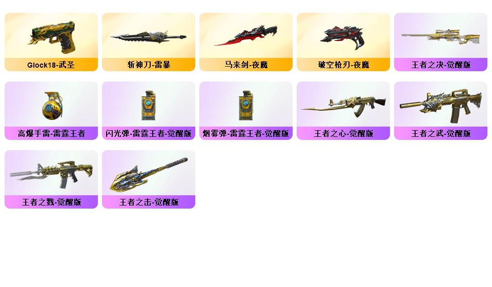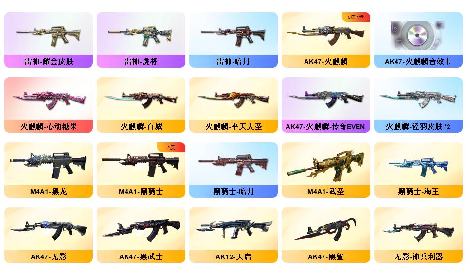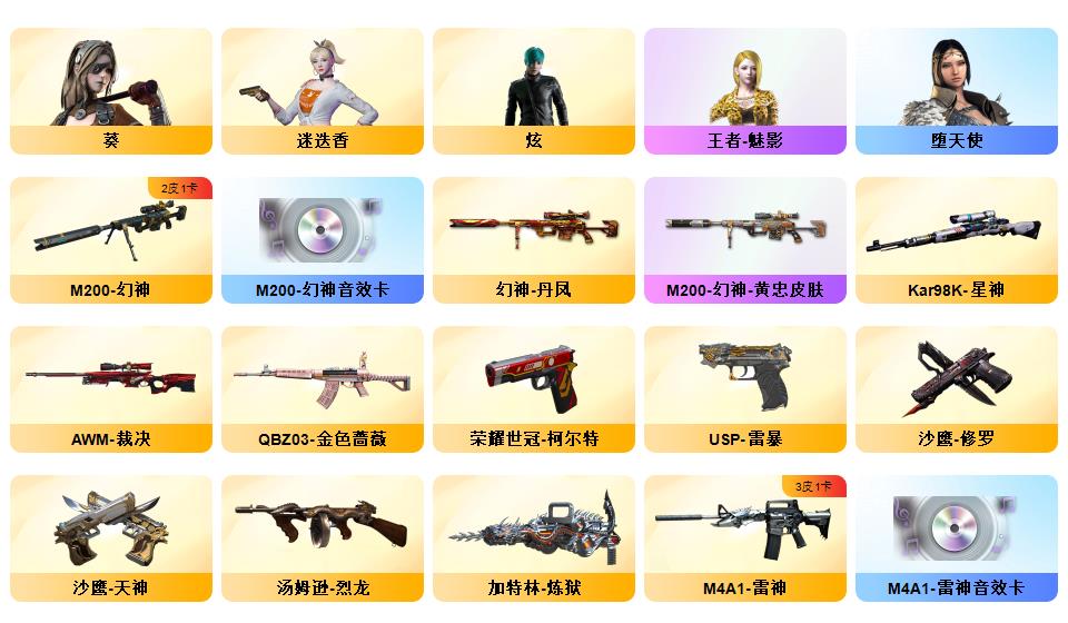 【幻神+幻神丹凤+幻神黄忠+幻神音效卡】usp雷暴+世冠柯尔特【星神 王者之戮 王者之决】【毁灭sv冠军 火麒麟even 火麒麟轻羽 雷神白鲨】【幻神 火麒麟 雷神 毁灭音效卡】【qbz金色蔷薇 火麒麟 毁灭】【天龙曼陀罗 cop白鲨 雷神精英刀锋 斯泰尔蝴蝶 牛牛ak 芭蕾特零水下丽影】【王者魅影 灵狐者职业经理】ac+工具包+手雷包