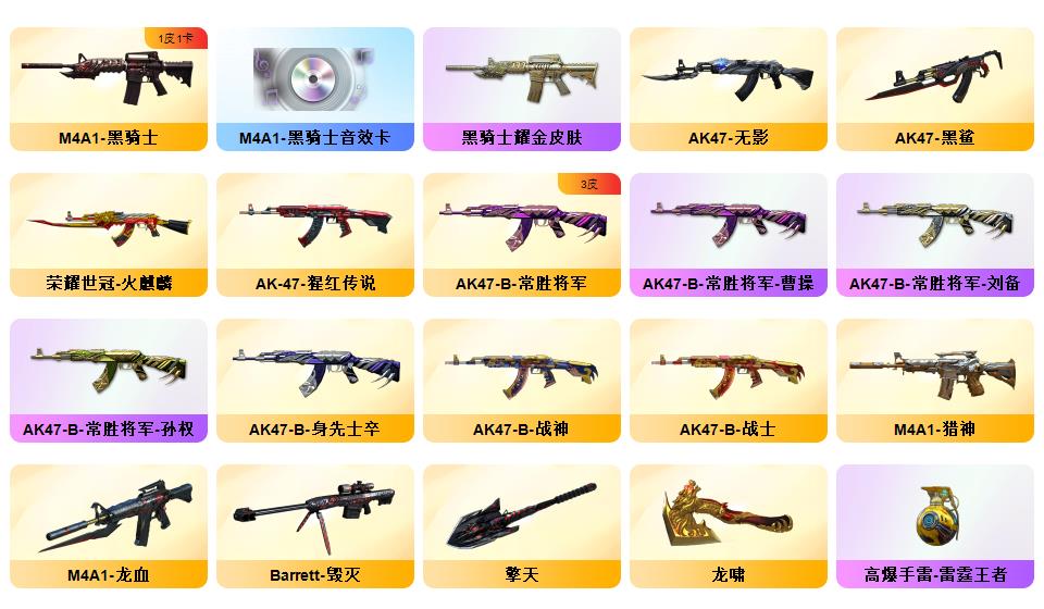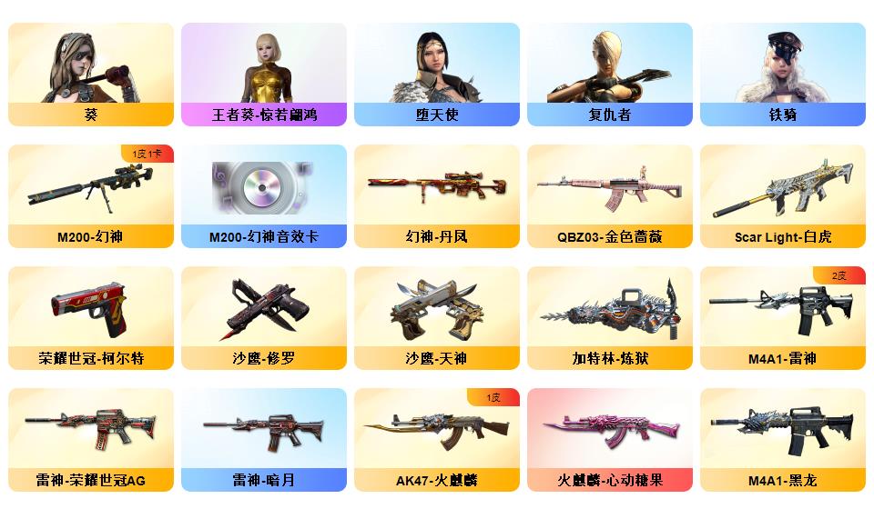 【幻神+幻神丹凤+幻神音效卡】世冠柯尔特【白虎 世冠火麒麟 王者火魄 王者冰魄】【雷神世冠ag 火麒麟心动糖果】【幻神 黑骑士音效卡】【qbz金色蔷薇 火麒麟 雷神 毁灭】【火麒麟灵狐 牛牛ak】【王者葵惊若翩鸿】ac+工具包+手雷包
