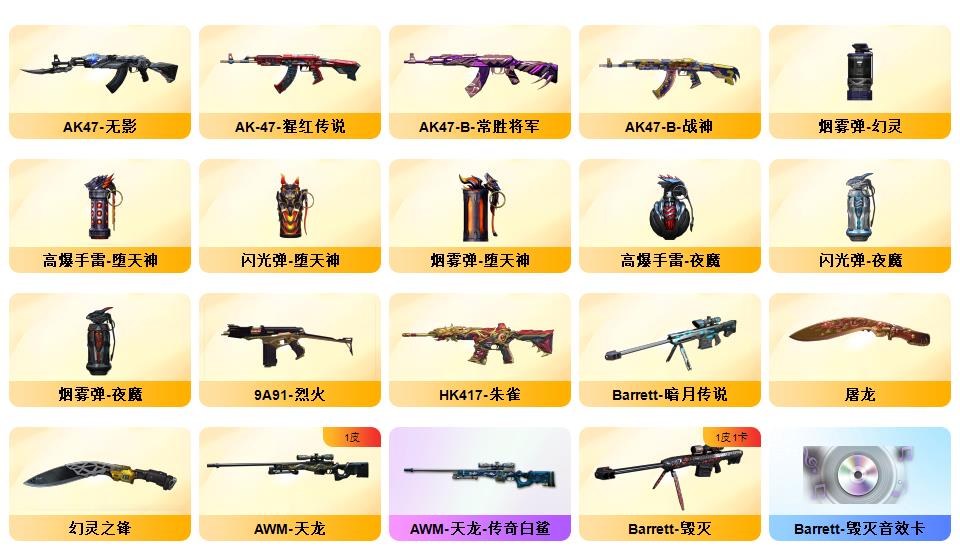 【幻神+幻神ag冠军】【白虎电玩 417朱雀 青龙】【传奇石头横秒之巅】【毁灭音效卡】【qbz金色蔷薇 火麒麟 雷神 毁灭】cop堕天神 黑龙吞噬者【雷神小红 天龙曼陀罗 cop旗袍】【王者瞳闭月羞花 王者涂鸦 灵狐者职业经理 女主播】ac+工具包+手雷包