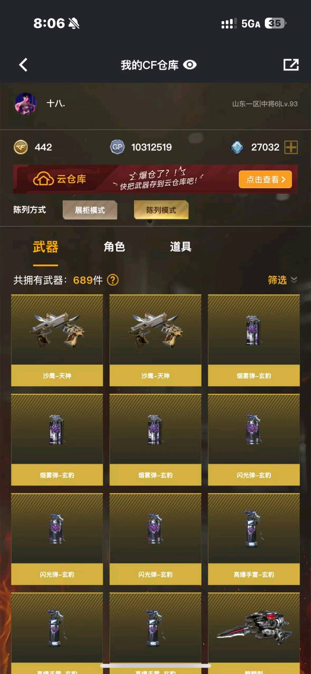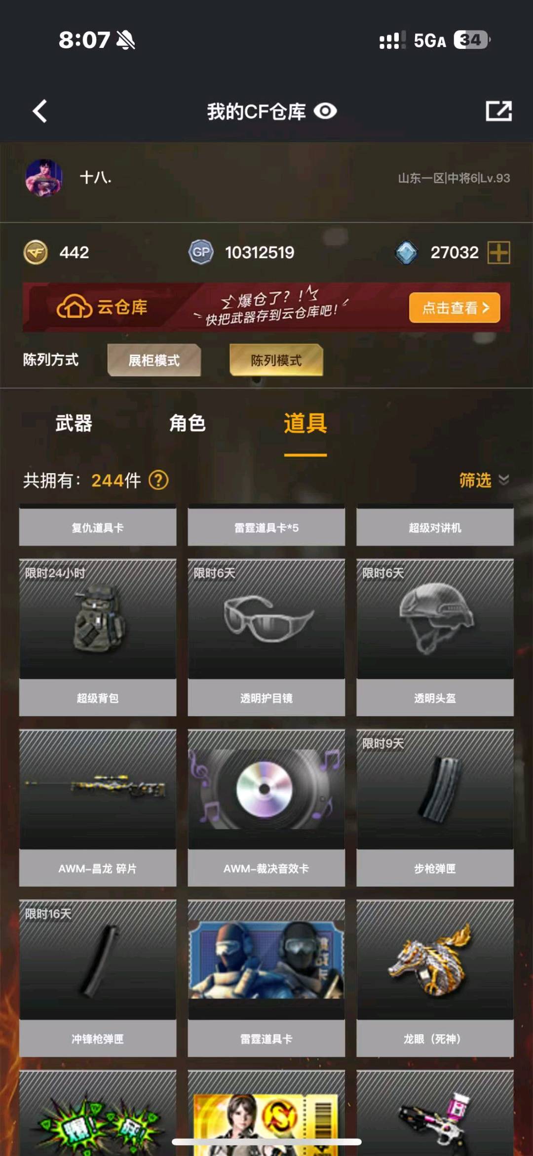 • 游戏区服:穿越火线 / 北部 / 山东一区