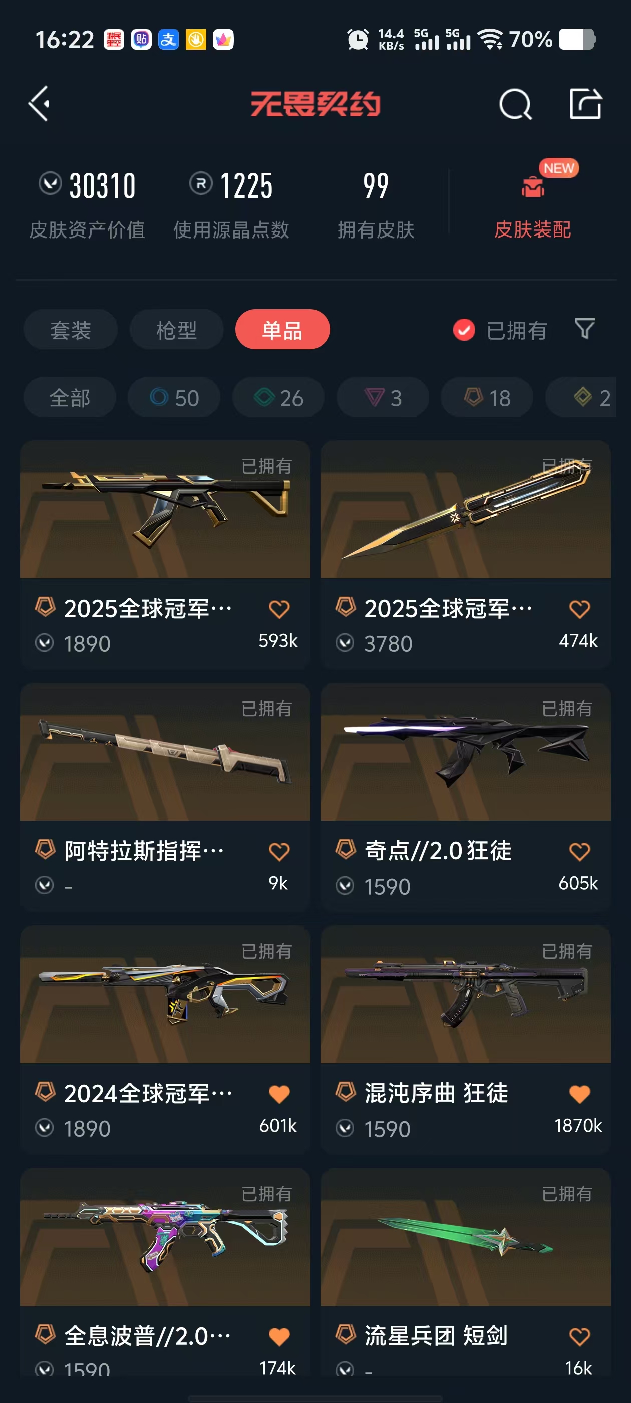 • 皮肤资产价值: 30310