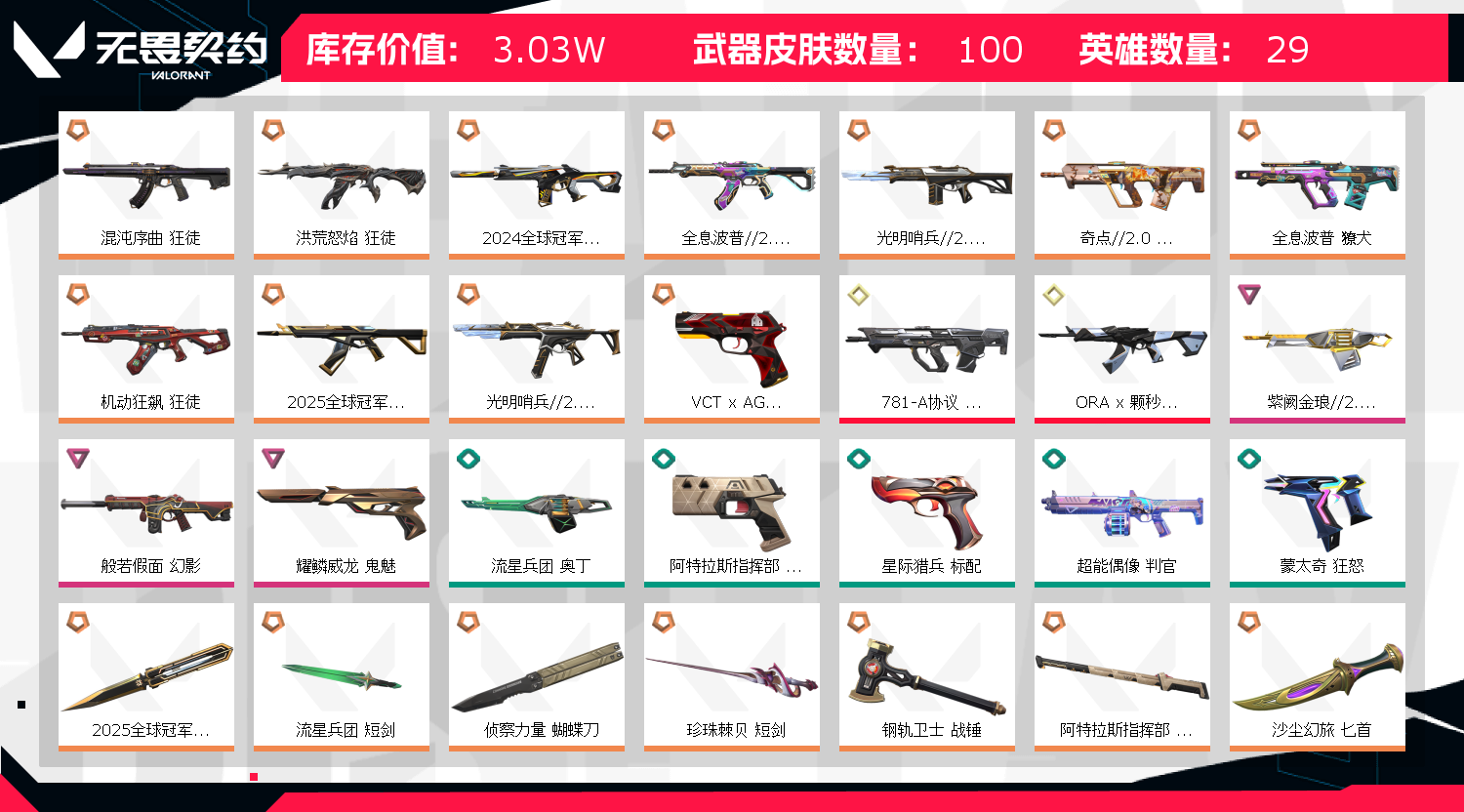 3W库存✨25冠军套装✨侦察蝴蝶✨混沌 流脓 颗秒 奇点 全息狂徒✨24 哨兵 般若幻影✨威龙鬼魅 侦察蝴蝶冻结秒解不要撤单!冻结秒解不要撤单!冻结秒解不要撤单! 您租赁过程中异地冻结请及时点击维权我们解决 请点击解除冻结,全天在线解冻 炸鱼轻点炸 控控分不要得MVP 账号来之不易望各位租客谅解 ⚠️严禁挂机秒退,如发现挂机,我们会根据违规程度对您进行拉黑处理!!! 人头超过30以上就会导致炸鱼封禁,弹出炸鱼导致的禁赛拉黑⚠️如果上号正在有人玩,可能是上一租客留下的对局,不用着急退单,我们会赠送您时间游玩 禁止开挂!每个登录的账号都有实时监控,如发现开挂上号我们会立即对您拉黑! 谢谢各位租客支持✨混沌 流脓 颗秒 奇点 全息狂徒✨24 哨兵 般若幻影✨威龙鬼魅;洪荒怒焰 狂徒,混沌序曲 狂徒,2024全球冠军赛 幻影,