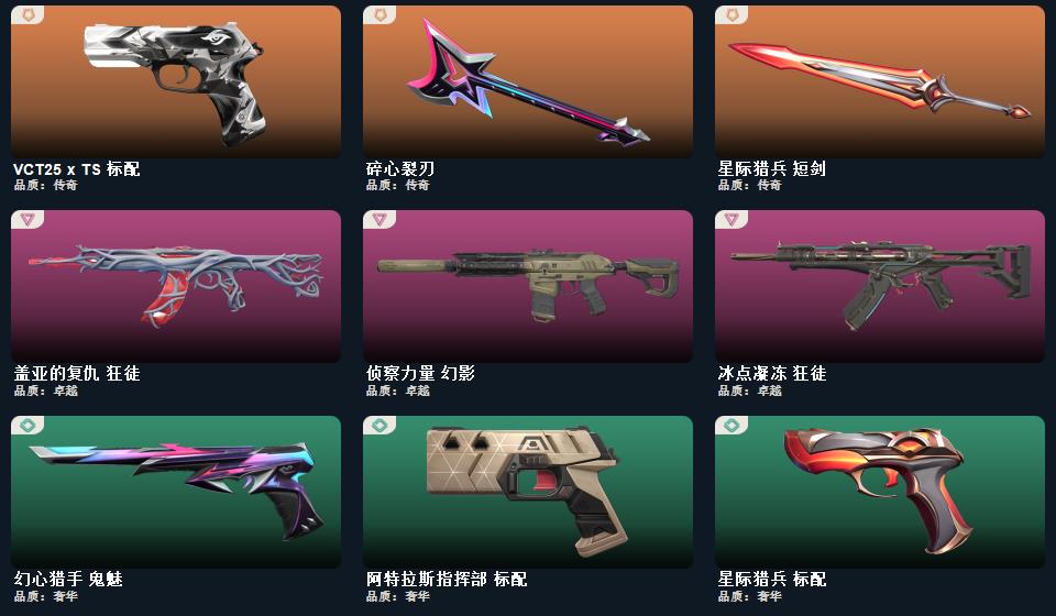 wegame无畏契约★武器皮肤数量:40,碎心裂刃,剥皮小刀,黑波之刃,2025全球冠军赛 蝴蝶刀,星际猎兵 短剑,源始幻刃,西部未来 正义,塑水宗 骇灵,冰点凝冻 狂徒,诛心猎手 冥驹