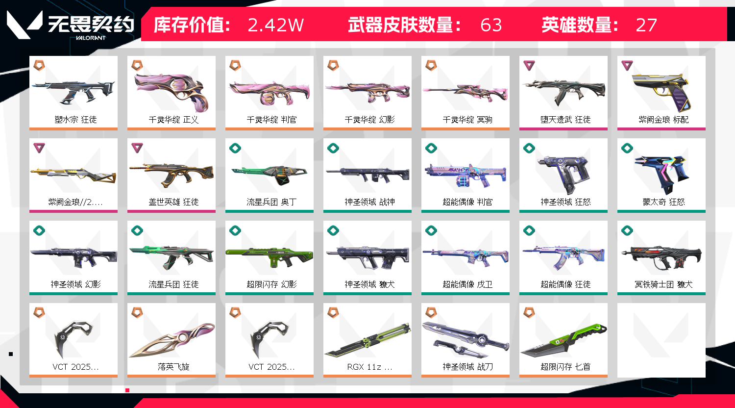 首页 > 租号大厅 > 无畏契约-wegame > wegame/wegame > VCT爪刀❤️显卡蝴蝶刀❤️全套千灵华绽❤️塑水宗❤️盖世英雄❤️堕天遗武
