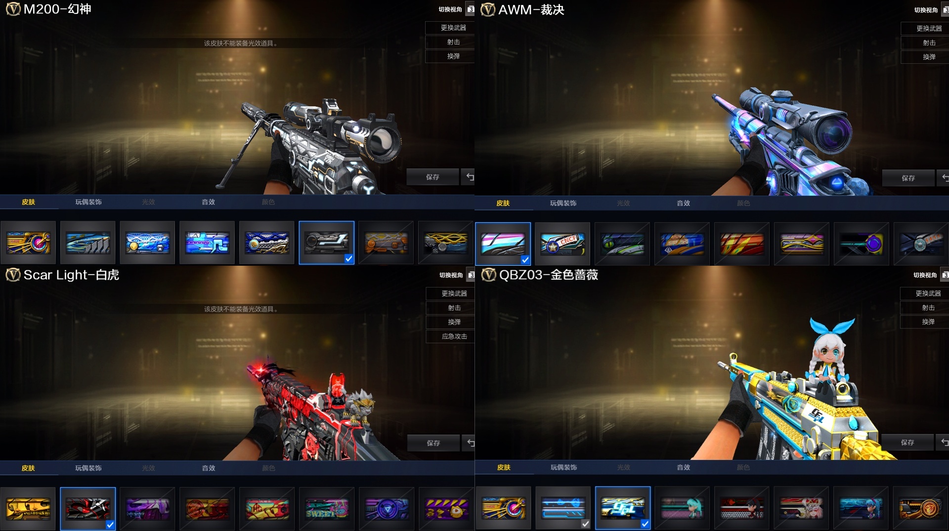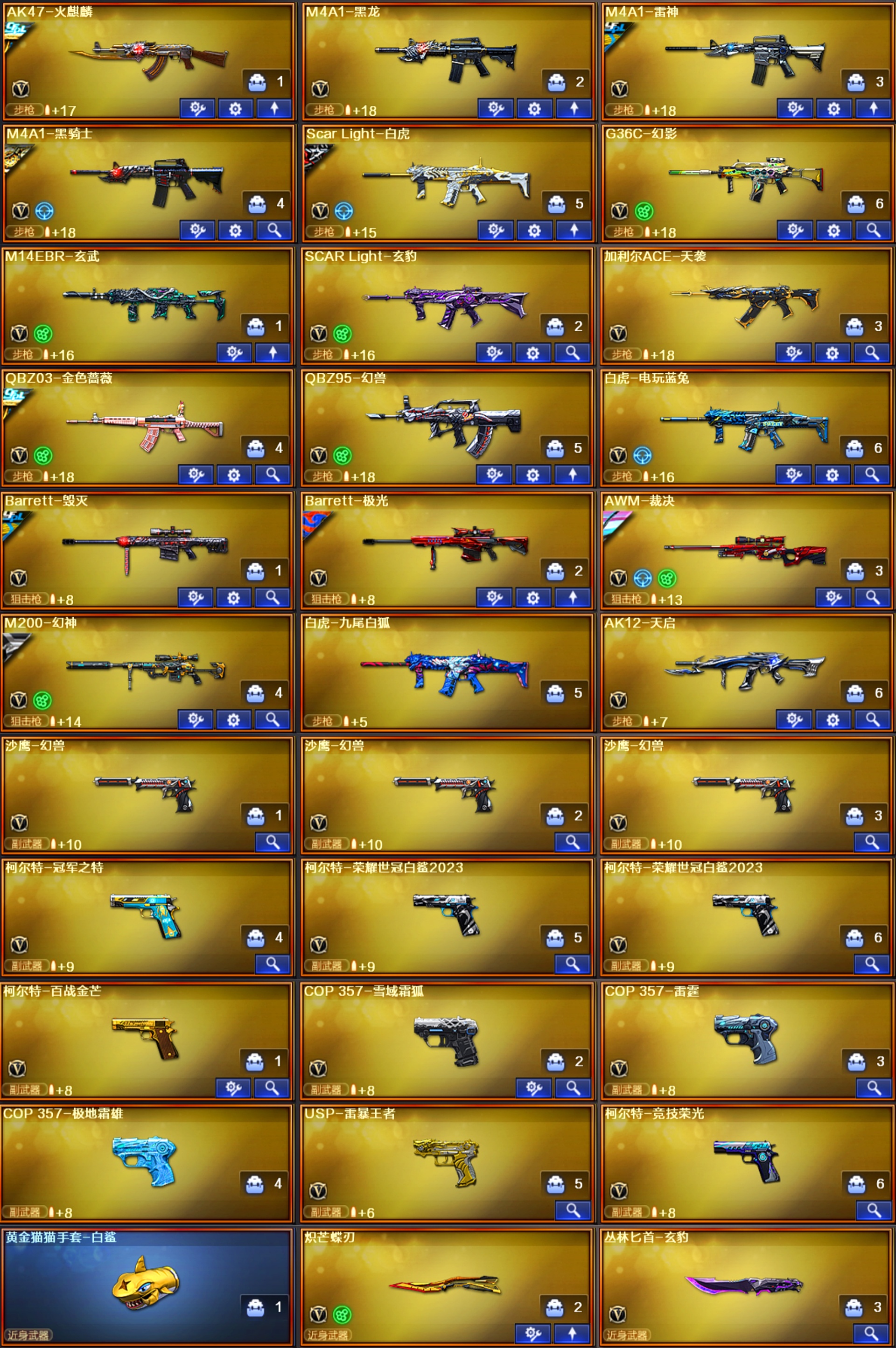 幻兽X3加利尔幻影玄豹4柯尔特♥幻神音效卡6皮YZK♥裁决音效卡2皮流光♥白虎常旭♥QBZ3皮冠军