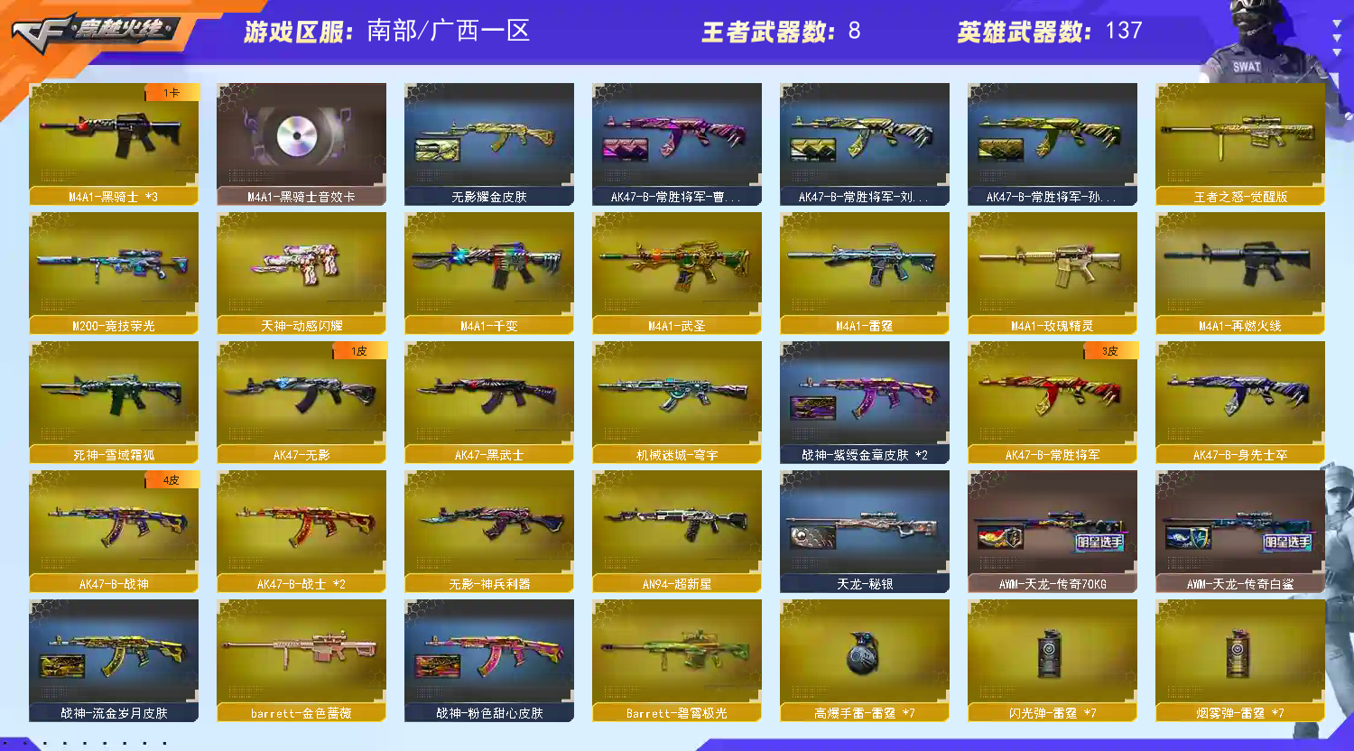 • 游戏区服:穿越火线 / 南部 / 广西一区