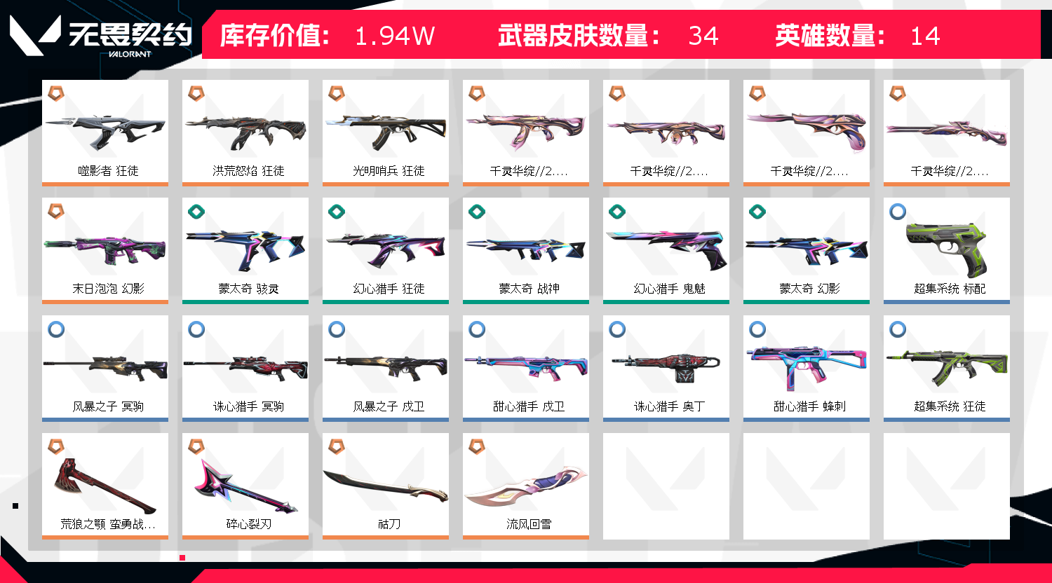 • 武器皮肤数量: 34