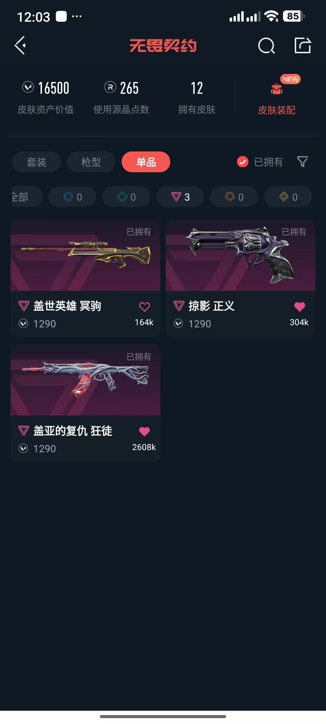 • 皮肤资产价值: 16500