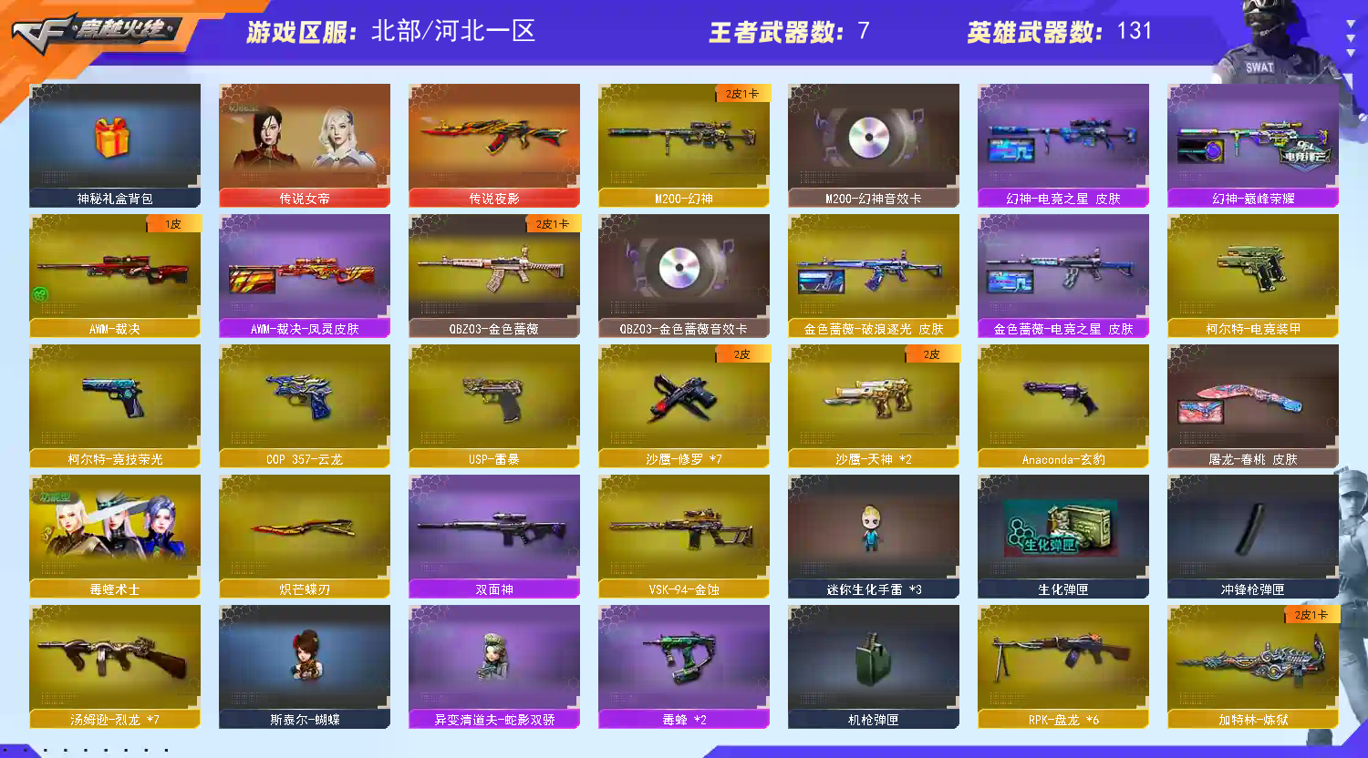 • 游戏区服:穿越火线 / 北部 / 河北一区
