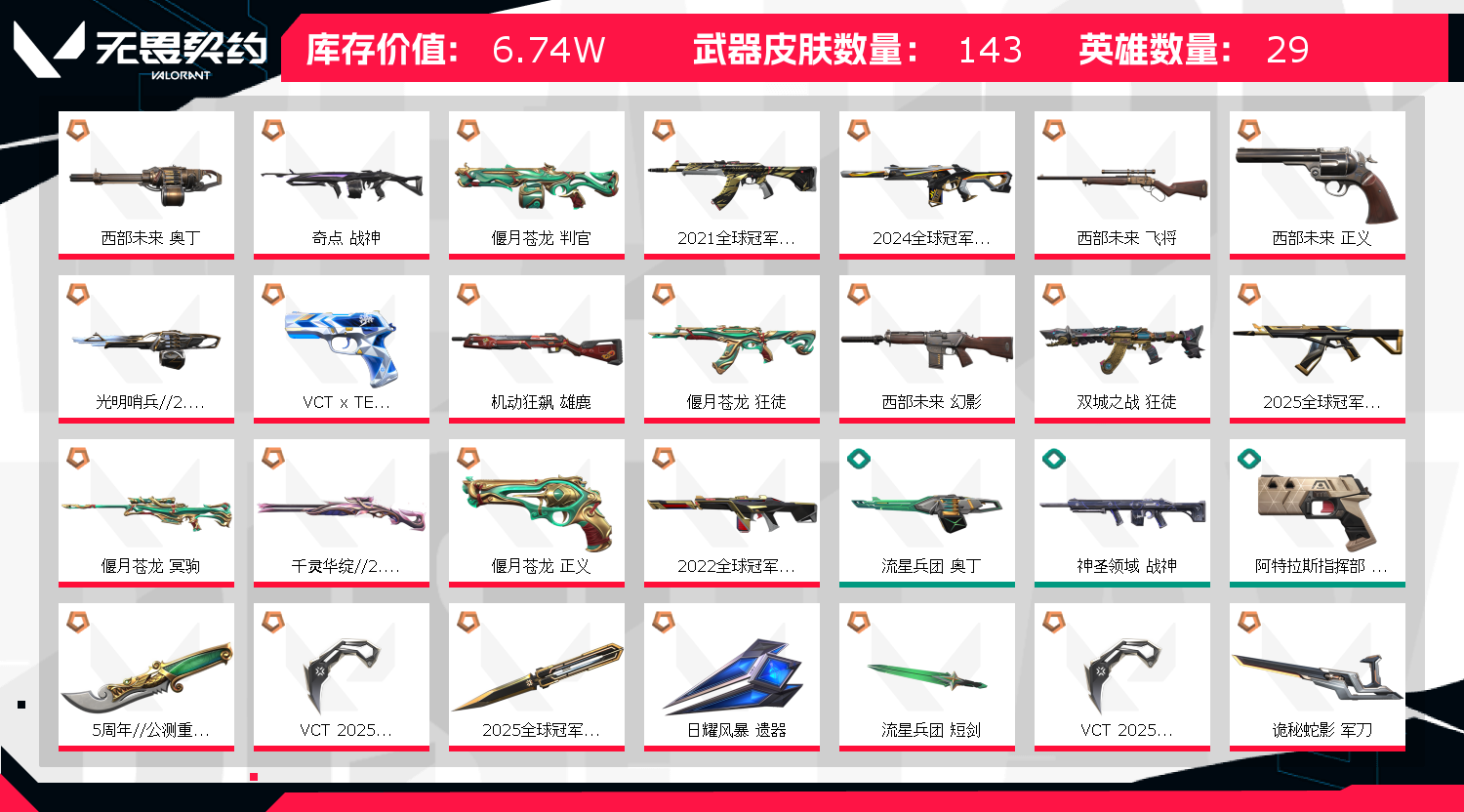 • 皮肤资产价值: 67410