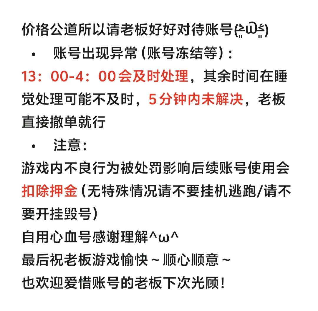 • 租号押金:10.0(订单结束后24小时退还)