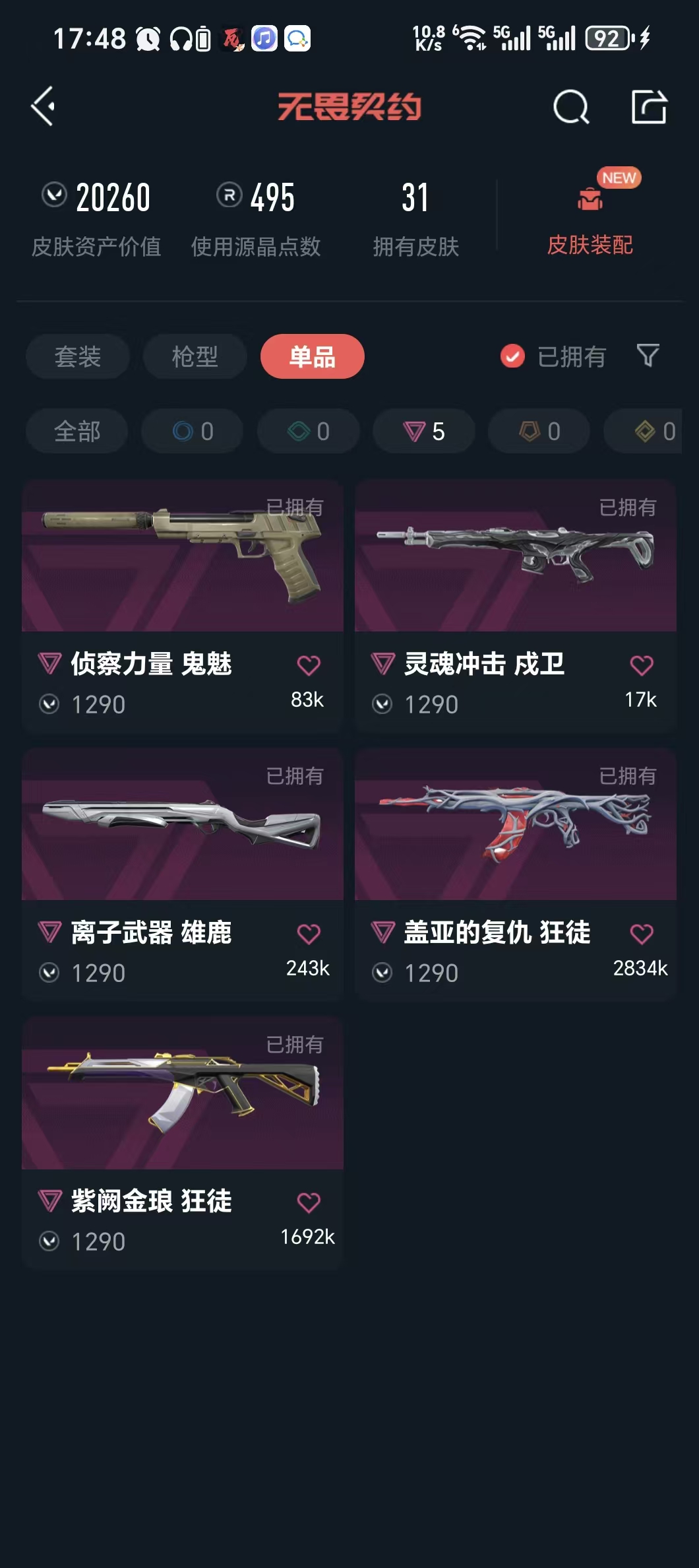 • 皮肤资产价值: 20260