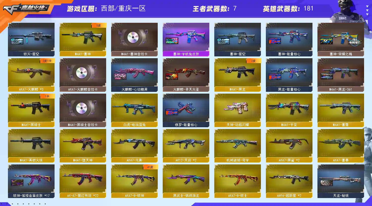 • 游戏区服:穿越火线 / 西部 / 重庆一区