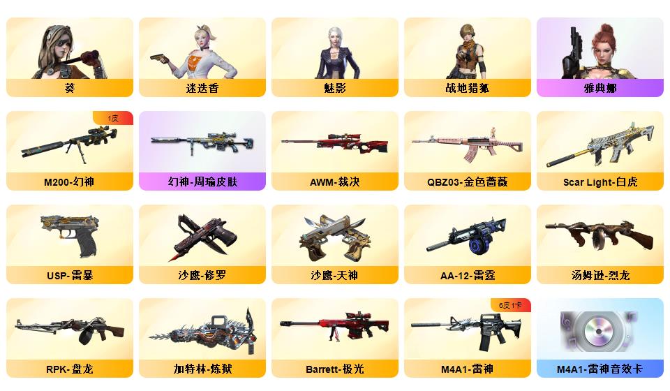 周瑜幻神+qbz金色蔷薇白虎朱雀炎心森决雷暴蝴蝶6烈6盘4音/荣耀宠儿耀金