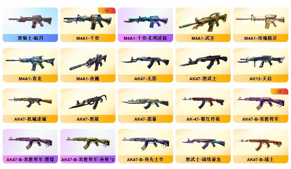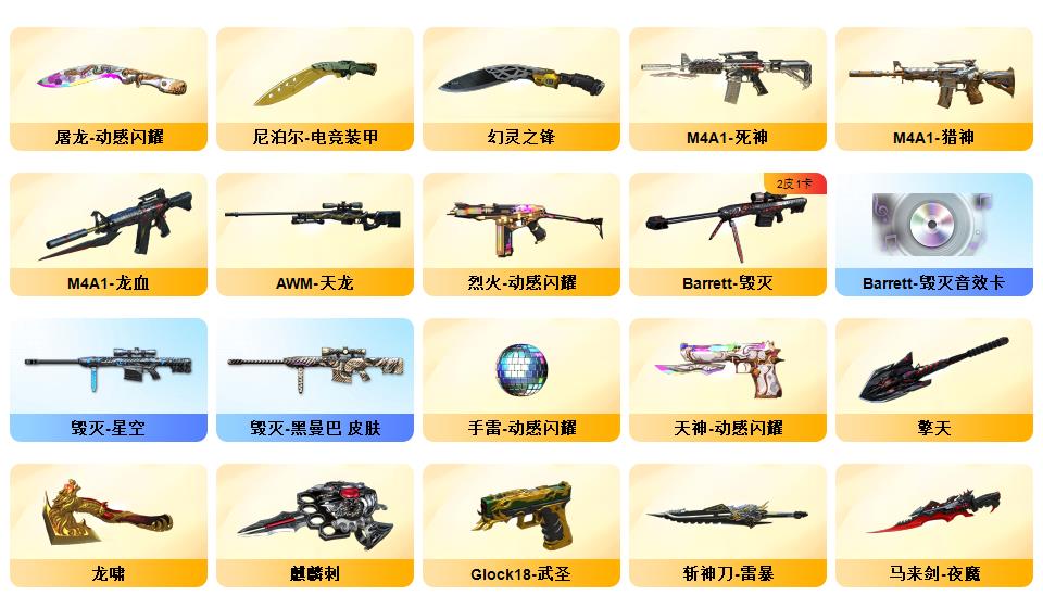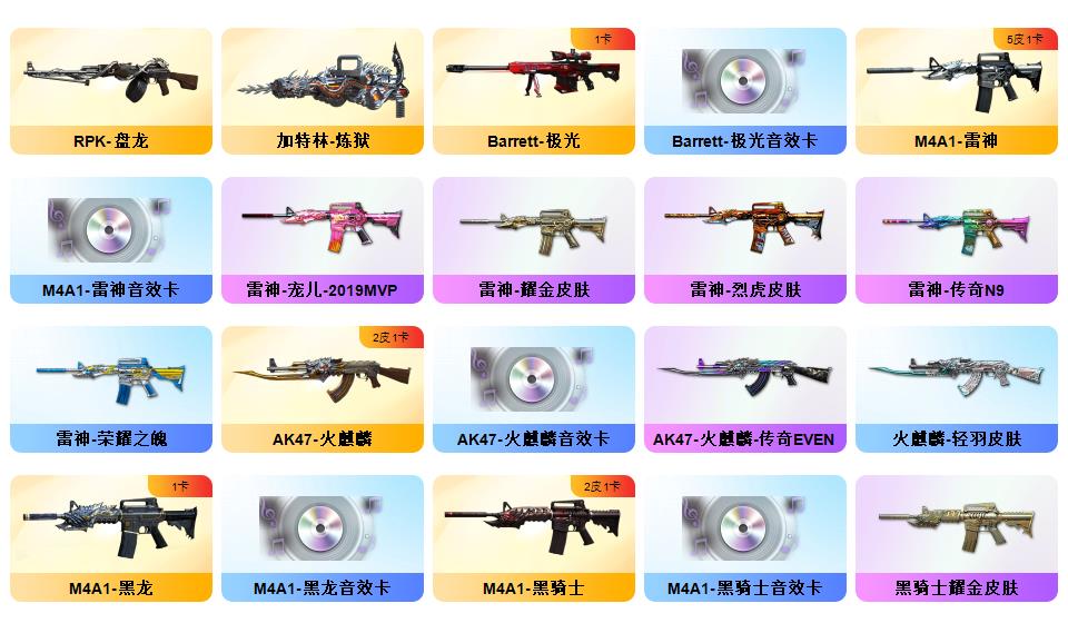 传说暗裔/M200-幻神/幻神N9/幻神宠儿/幻神黄忠王者幻神/98K-星神/白虎/qbz/6烈龙+蝴蝶/7炼狱/雷暴*2/电竞装甲套装/夜魔套装/雷暴套装/极光音效卡/黑骑士音效卡/黑龙音效卡/